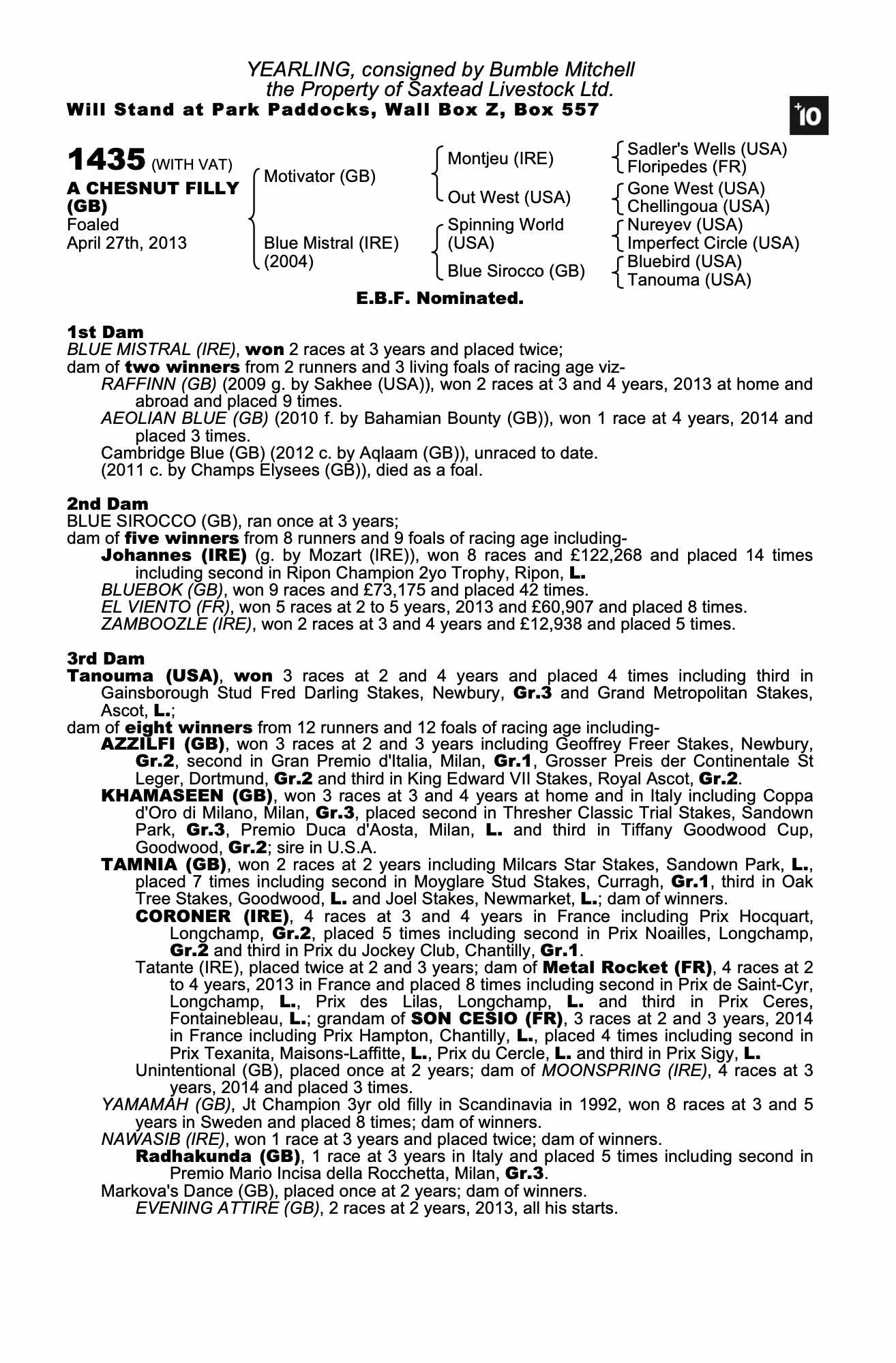 December Foal Sale 2015 lot 627 C. by Helmet (AUS) 2015, Bumble Mitchell=>Woodstock 6,000 gns