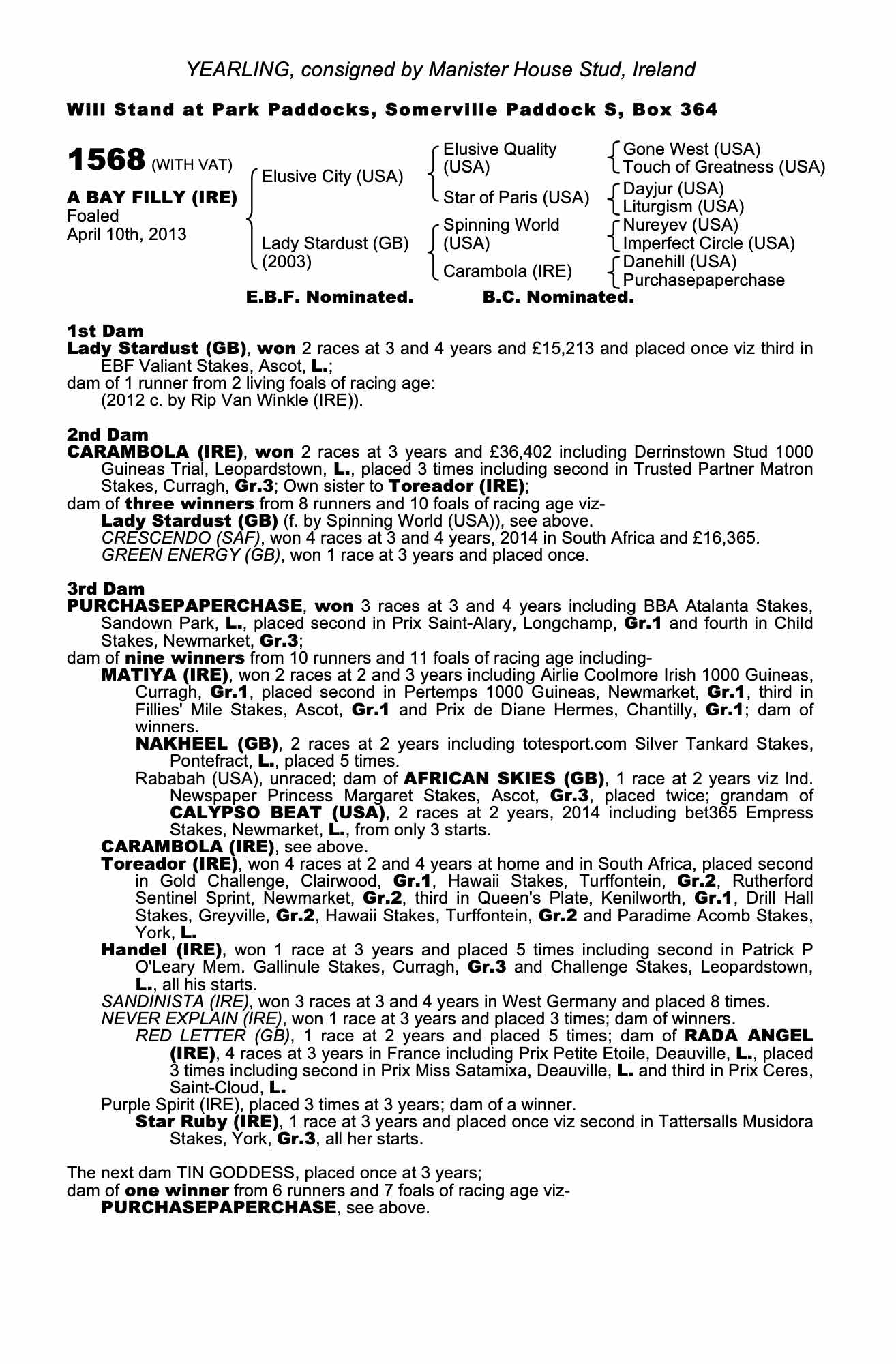 Elusive City (USA) / Lady Stardust (GB) B.F. (IRE)
