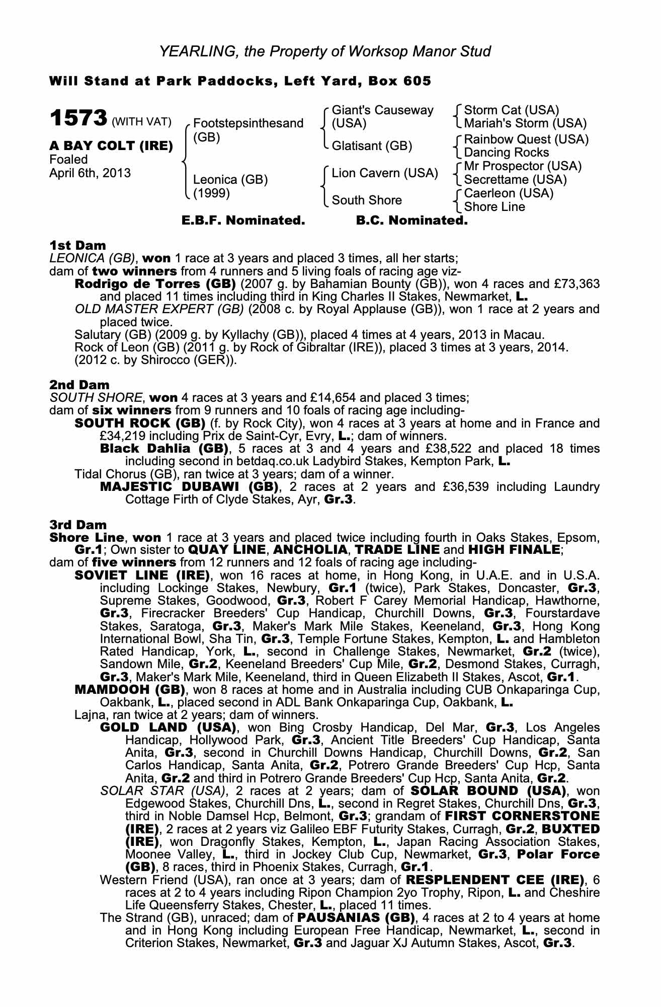 Consignor: Worksop Manor Stud