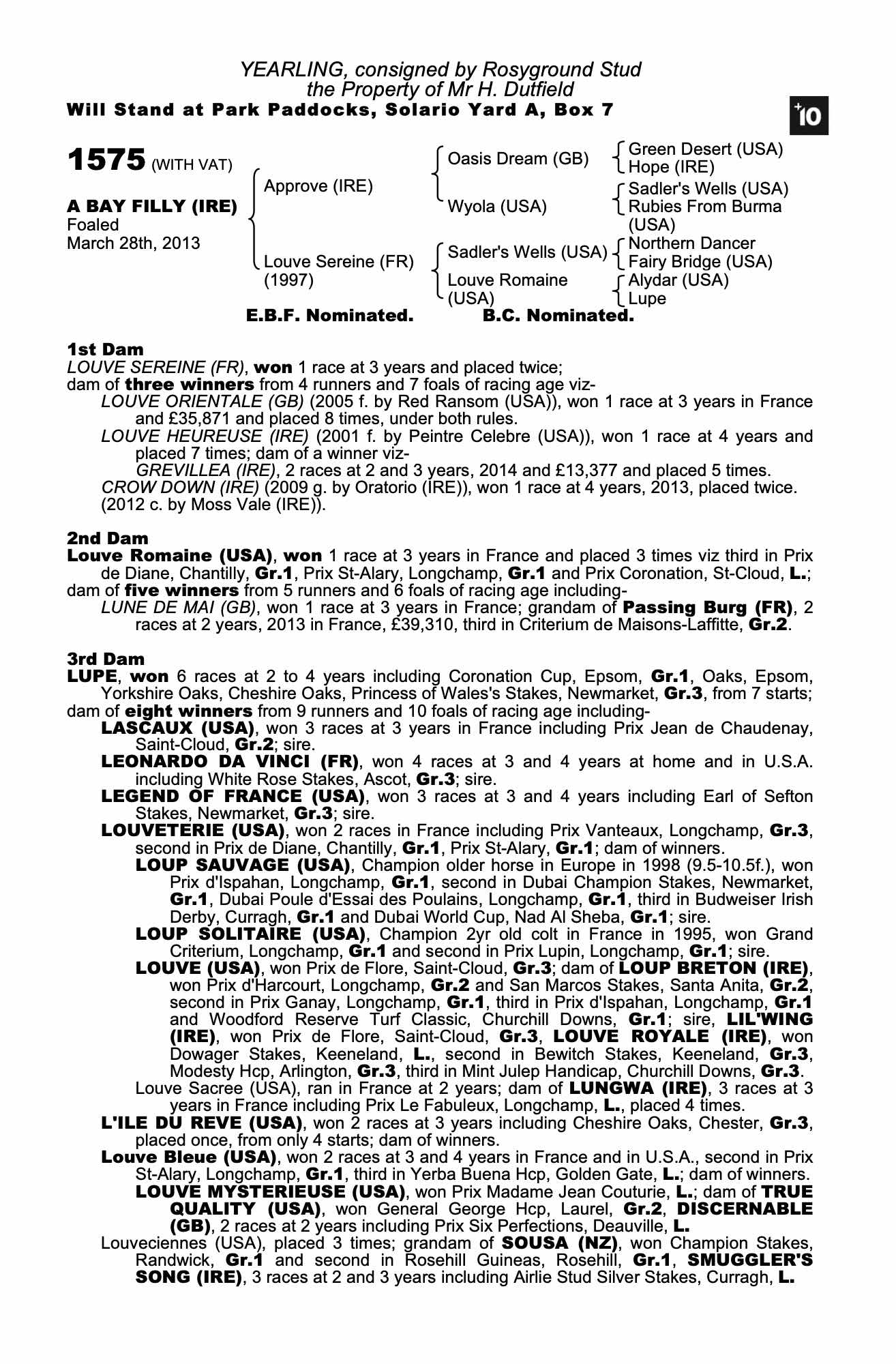 December Mare Sale 2004 lot 2512 Louve Heureuse (IRE) (F. by Peintre Celebre (USA)), Voute Sales, Agent=>Nathan IM Rossiter 1,000 gns