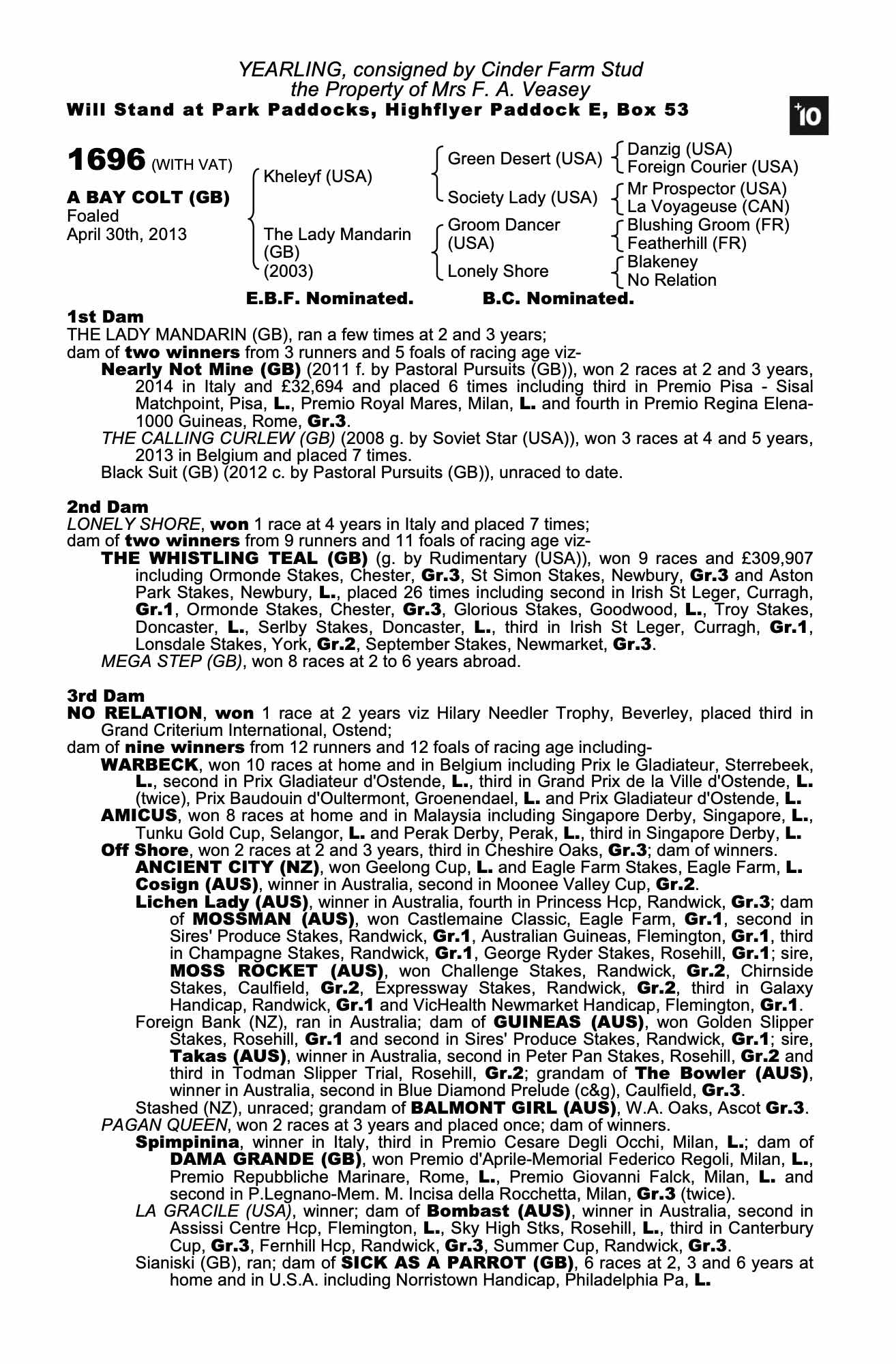 October Yearling Sale, Book 3 2013 lot 1599 C. by Pastoral Pursuits (GB) 2012, Cinder Farm Stud=>Federico Barberini, Agent 13,000 gns