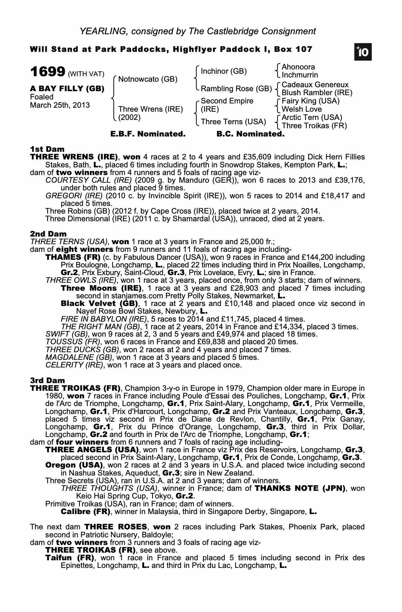 Autumn Horses in Training Sale 2014 lot 317 Three Robins (GB) (F. by Cape Cross (IRE)), East Everleigh Stables (R. Hannon)=>Szabolcs Szuna 5,000 gns
