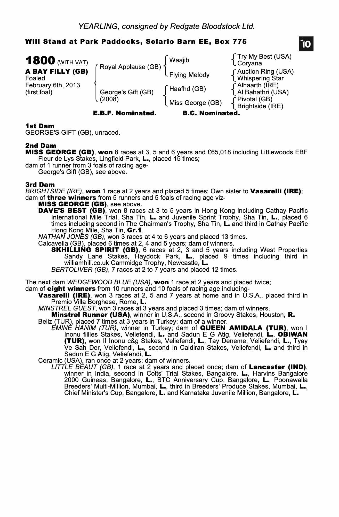 Consignor: Redgate Bloodstock Ltd.