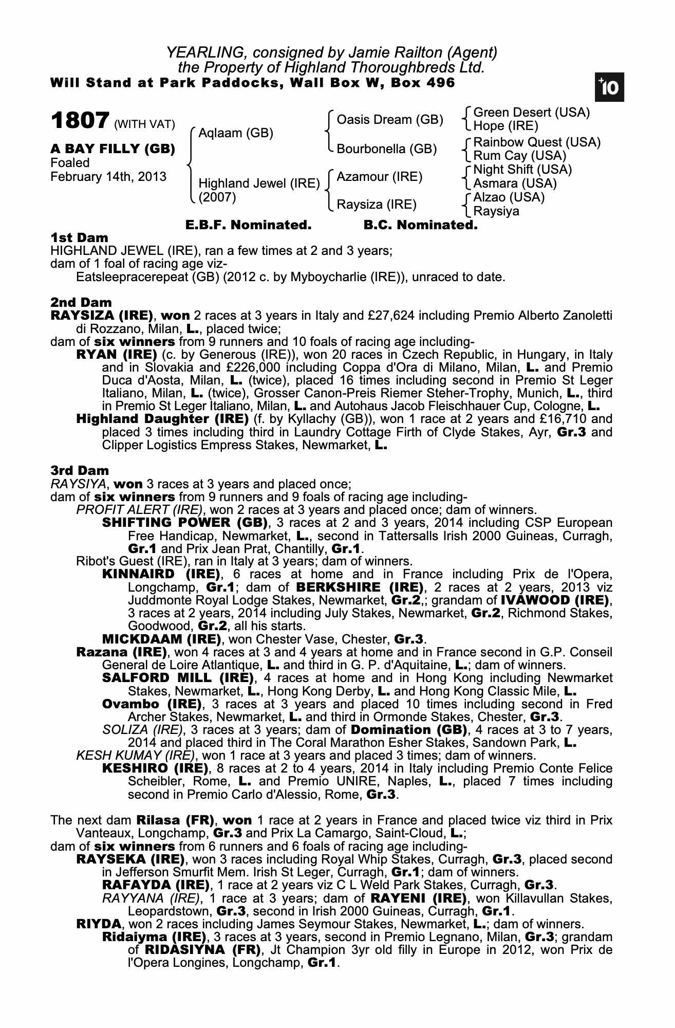 Consignor: Jamie Railton (Agent)