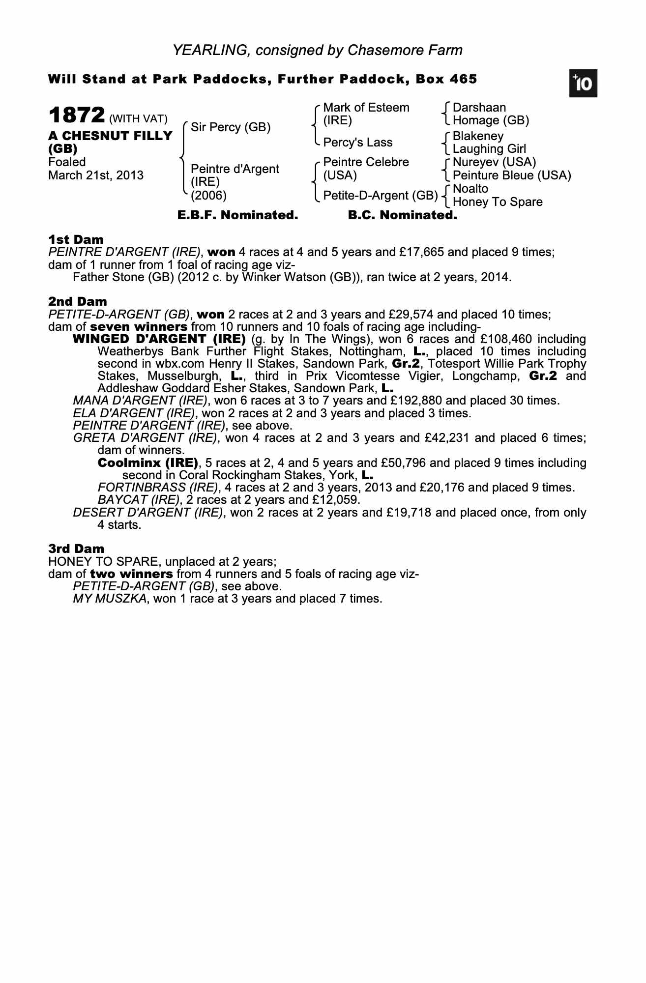 Sir Percy (GB) / Peintre d'Argent (IRE) Ch.F. (GB)