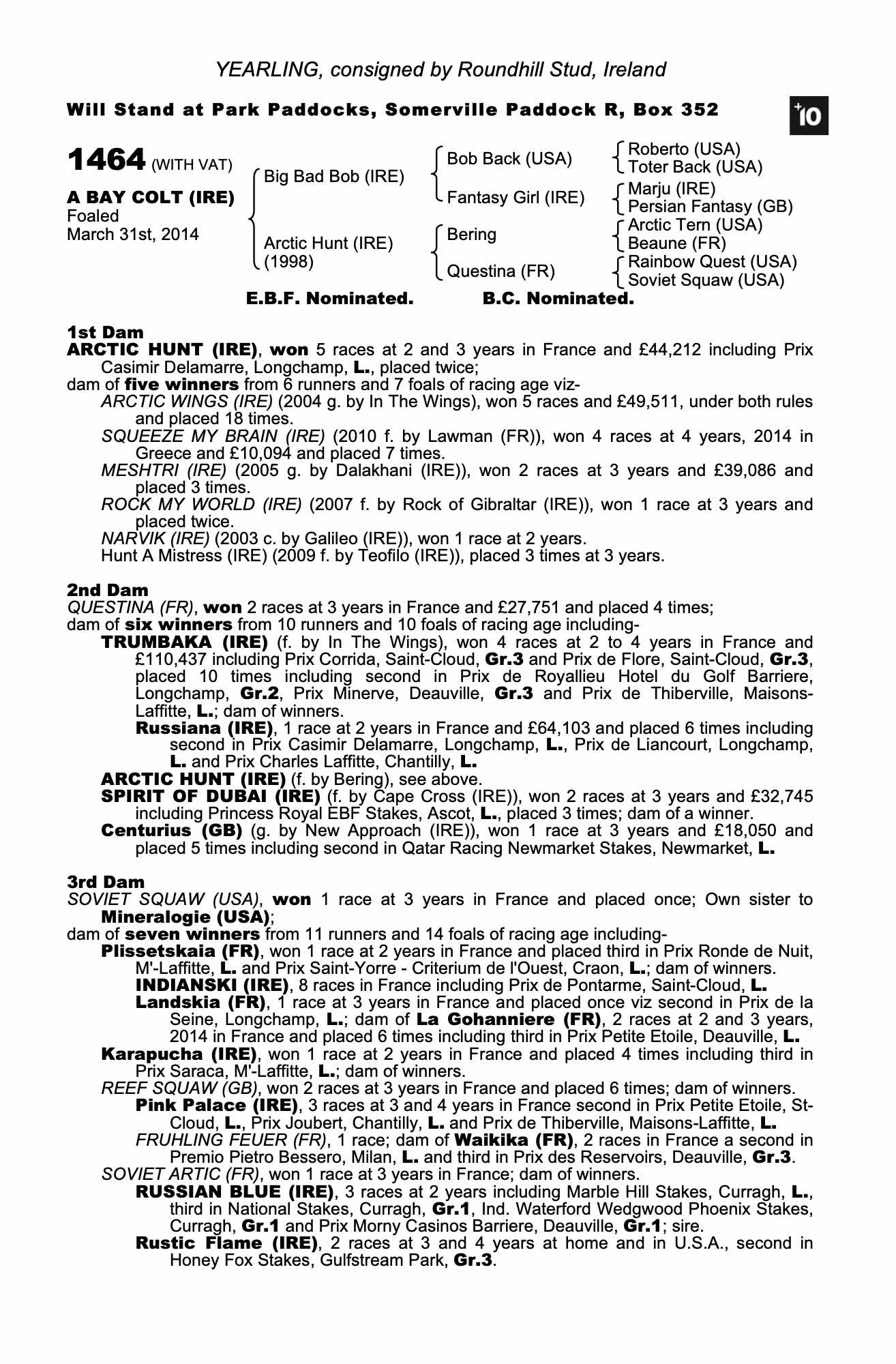 Consignor: Roundhill Stud, Ireland