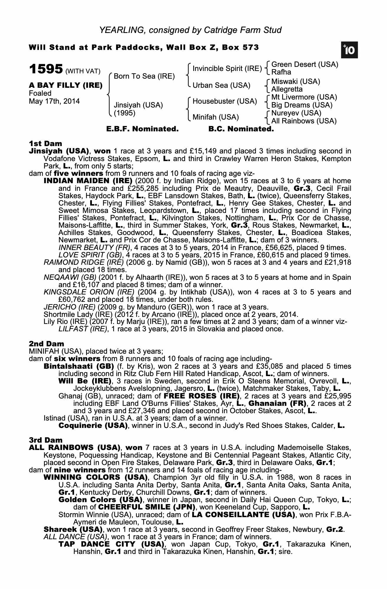 September Yearling Sale 2001 lot 98 F. by Indian Ridge 2000, Norelands Stud=>M Saunders €27,934