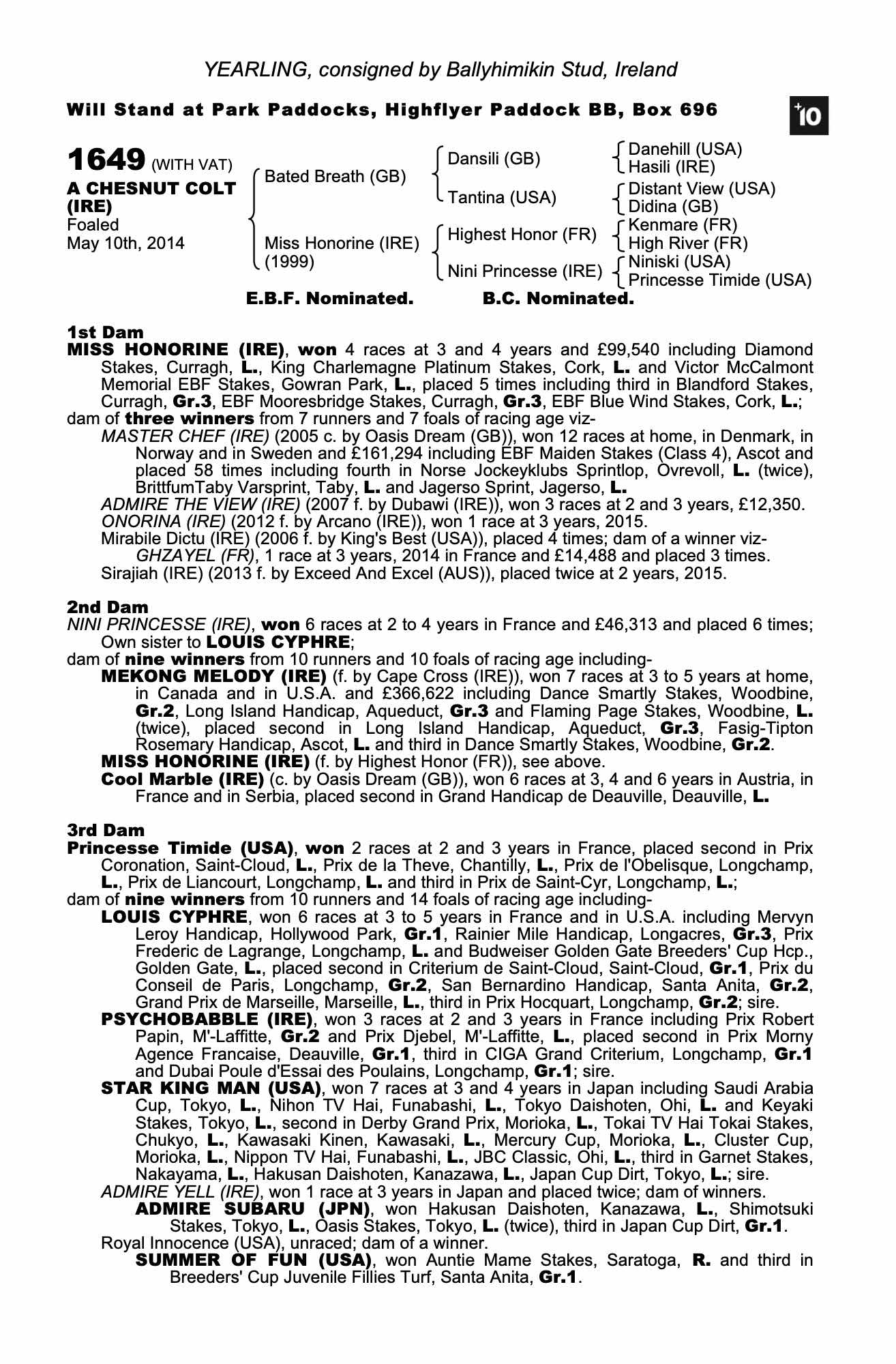 October Yearling Sale, Book 3 2016 lot 1424 F. by Champs Elysees (GB) 2015, Ballyhimikin Stud, Ireland=>Steph Hollinshead 5,000 gns