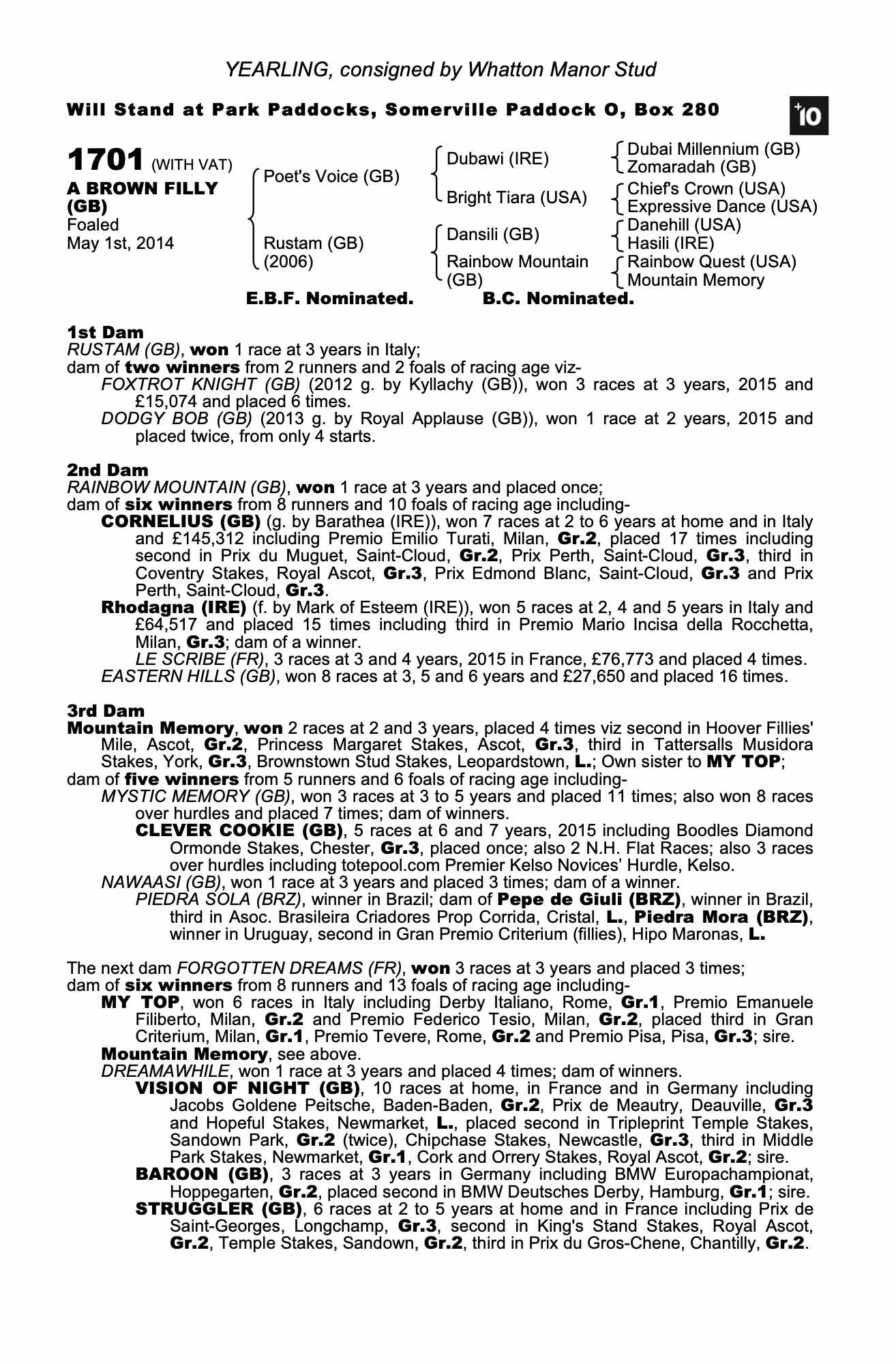 Consignor: Whatton Manor Stud