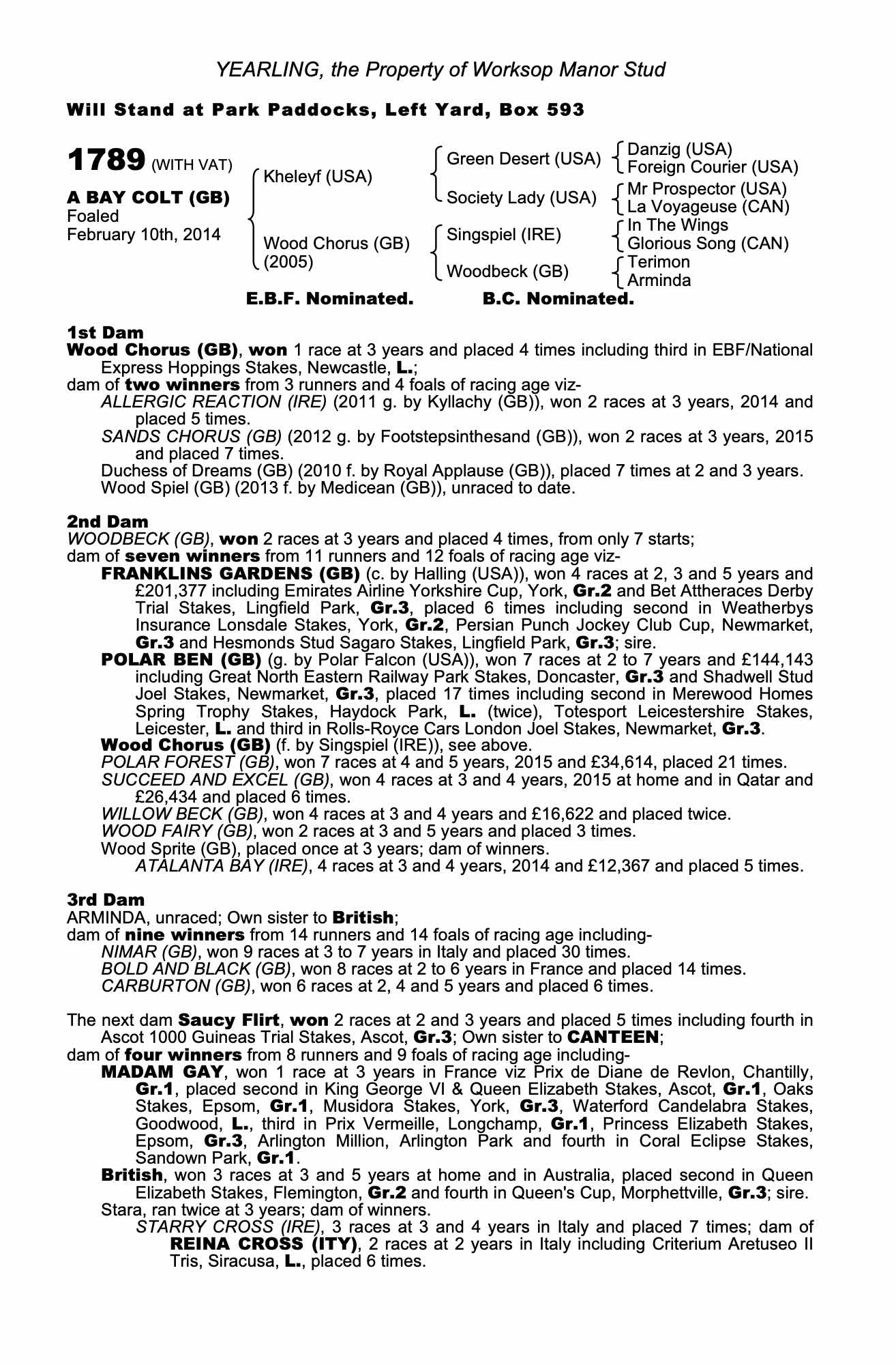 Consignor: Worksop Manor Stud