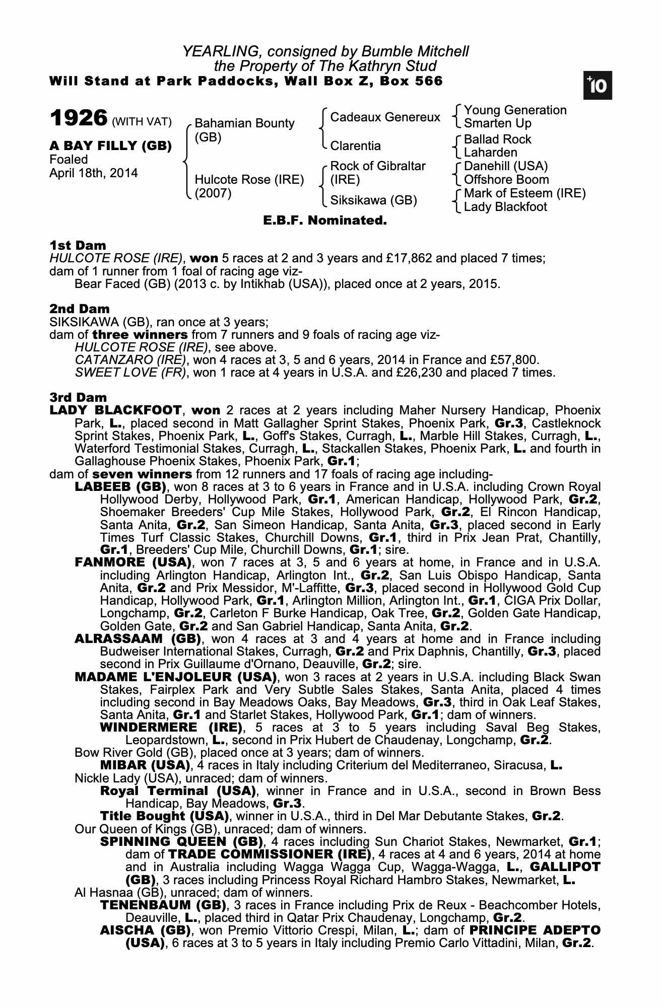 October Yearling Sale, Book 2 2014 lot 1022 C. by Intikhab (USA) 2013, Bumble Mitchell=>Sir Mark Prescott Bt 40,000 gns
