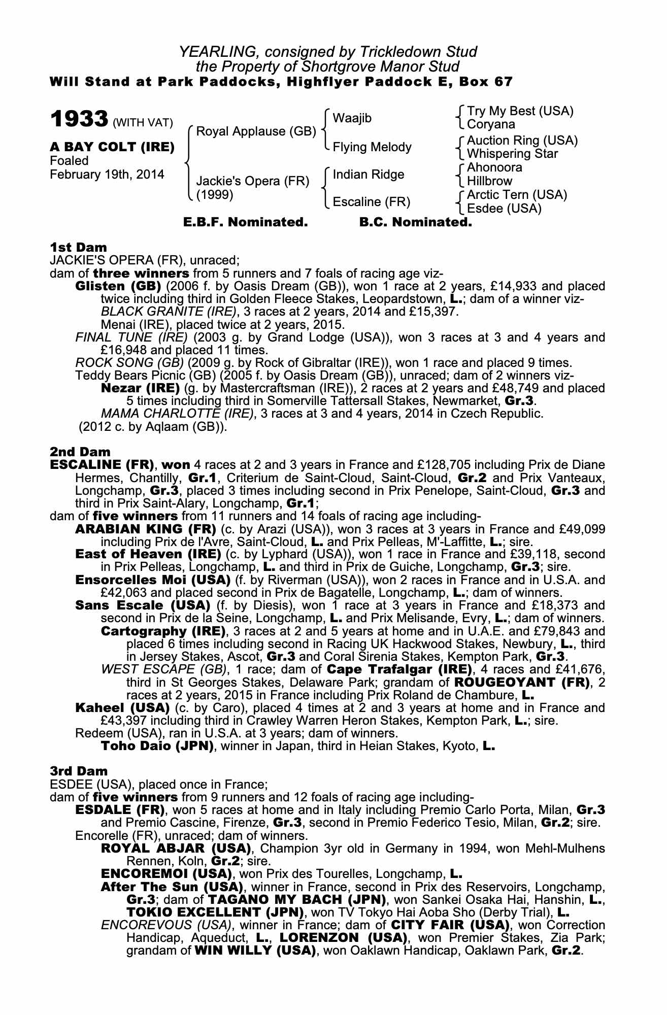 Consignor: Trickledown Stud