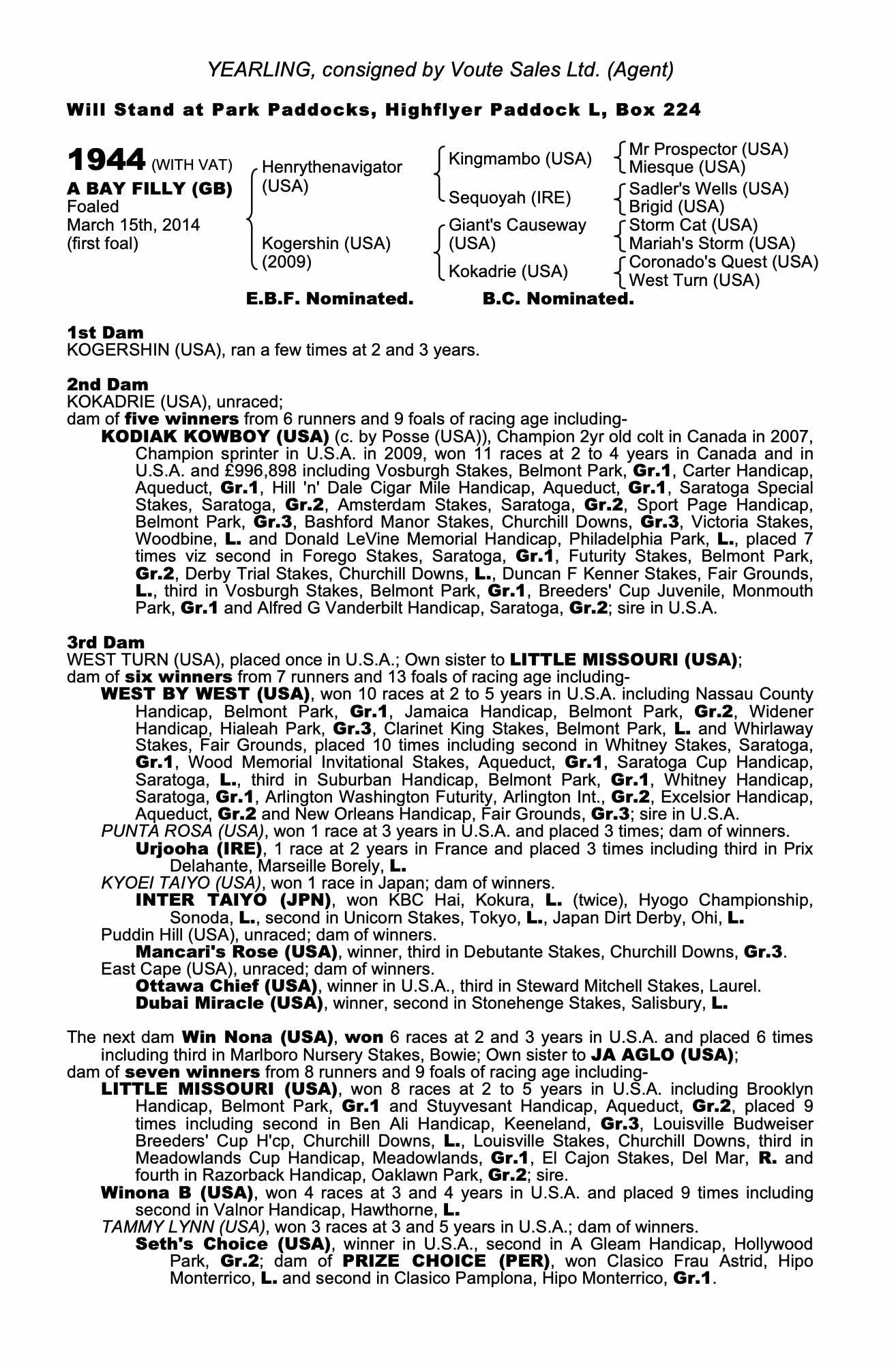 Consignor: Voute Sales Ltd. (Agent)