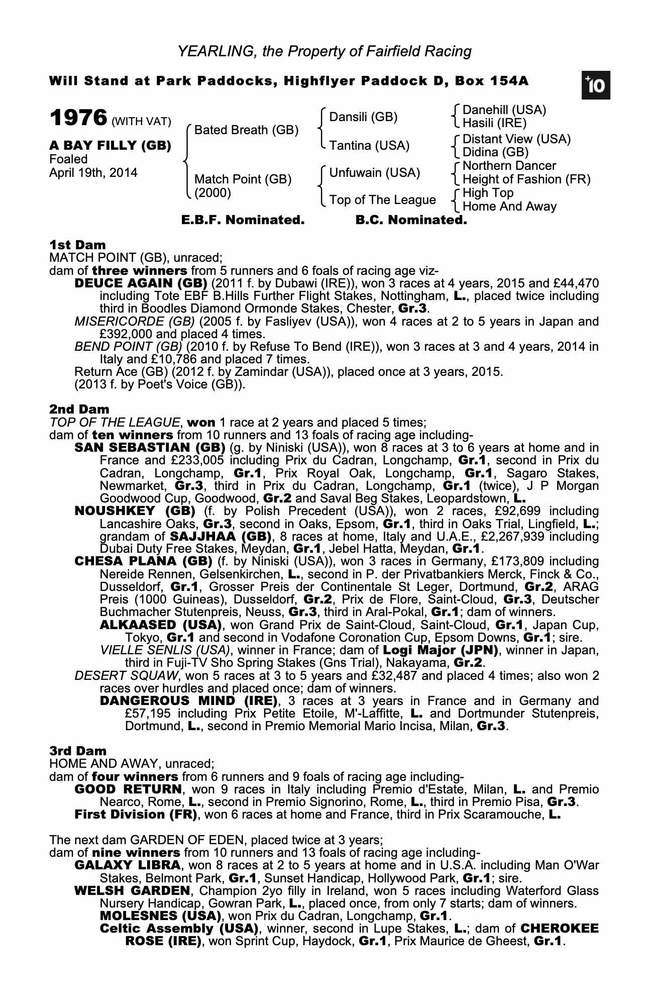 October Yearling Sale, Book 2 2014 lot 1155 F. by Poet's Voice (GB) 2013, Brightwalton Stud=>Lot Not Sold 11,000 gns