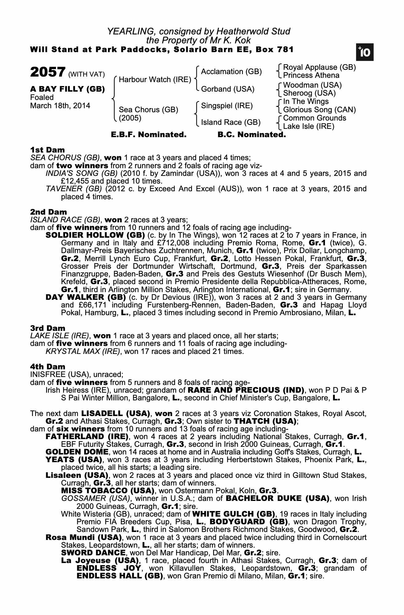 Guineas Horses in Training Sale 2016 lot 53 India's Song (GB) (M. by Zamindar (USA)), Trillium Place Stables (D. Simcock)=>Al Rowais 12,000 gns