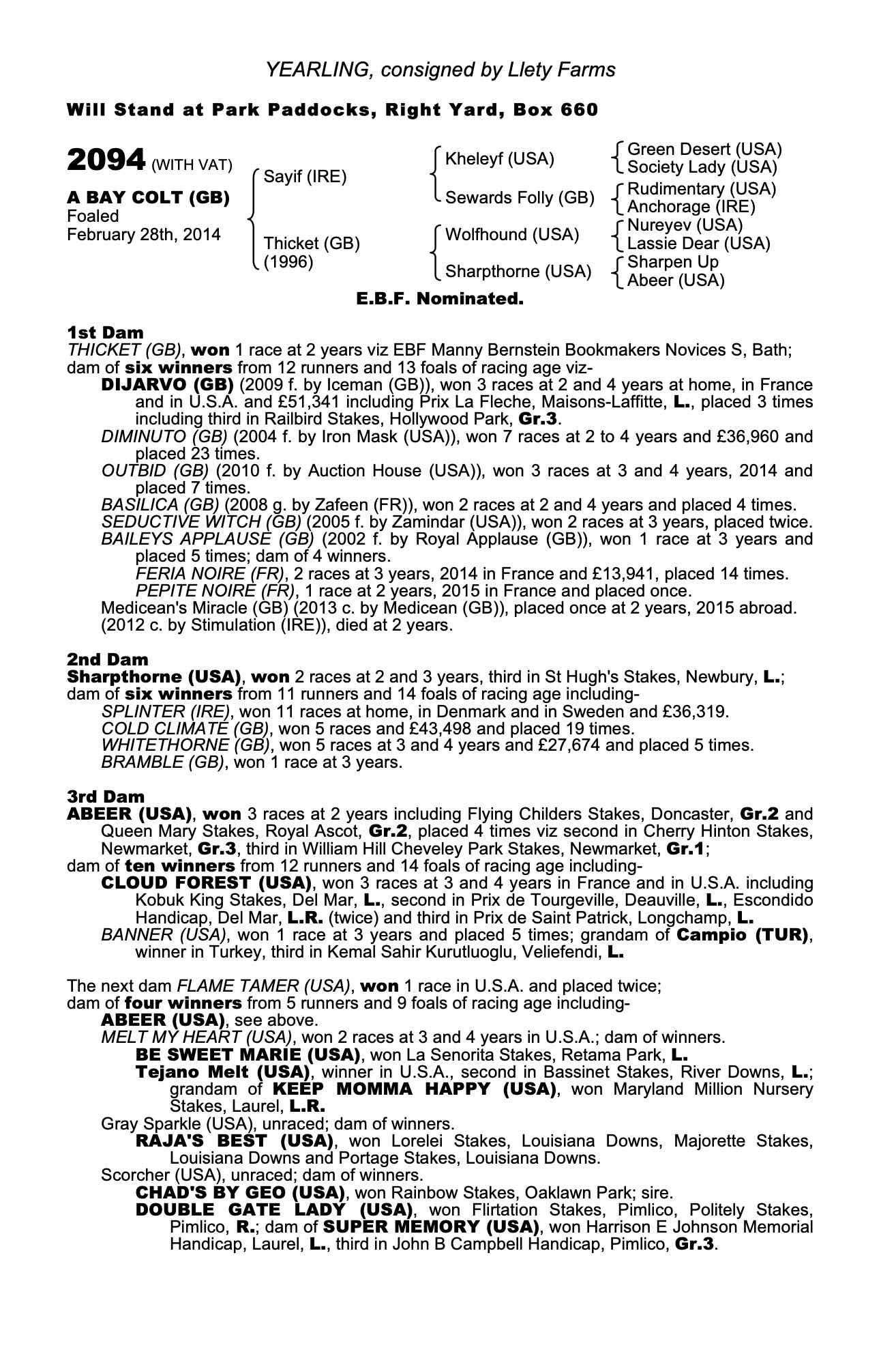 October Yearling Sale, Book 3 2014 lot 1369 C. by Medicean (GB) 2013, Llety Farms=>Vendor 10,000 gns