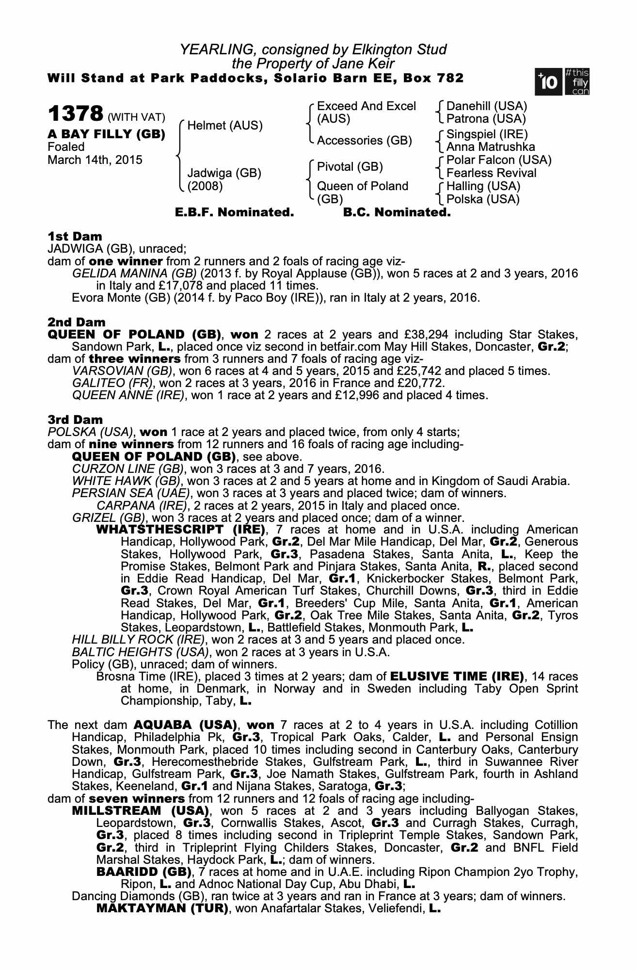October Yearling Sale, Book 3 2015 lot 1934 F. by Paco Boy (IRE) 2014, Elkington Stud=>Sc Davide Ducci 4,500 gns