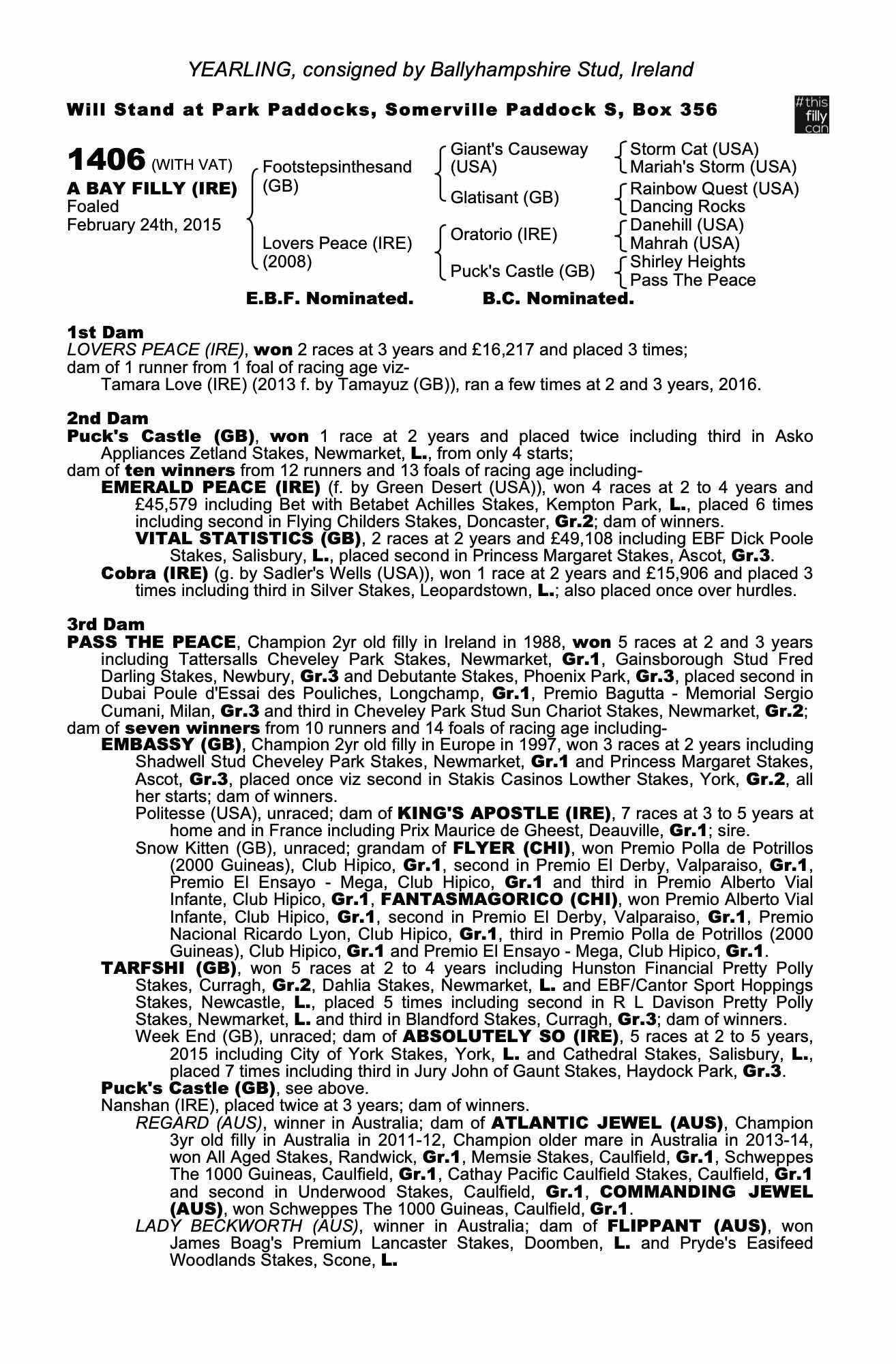 October Yearling Sale, Book 3 2017 lot 1674 F. by Tamayuz (GB) 2016, Ballyhampshire Stud, Ireland=>D Elsworth 21,000 gns