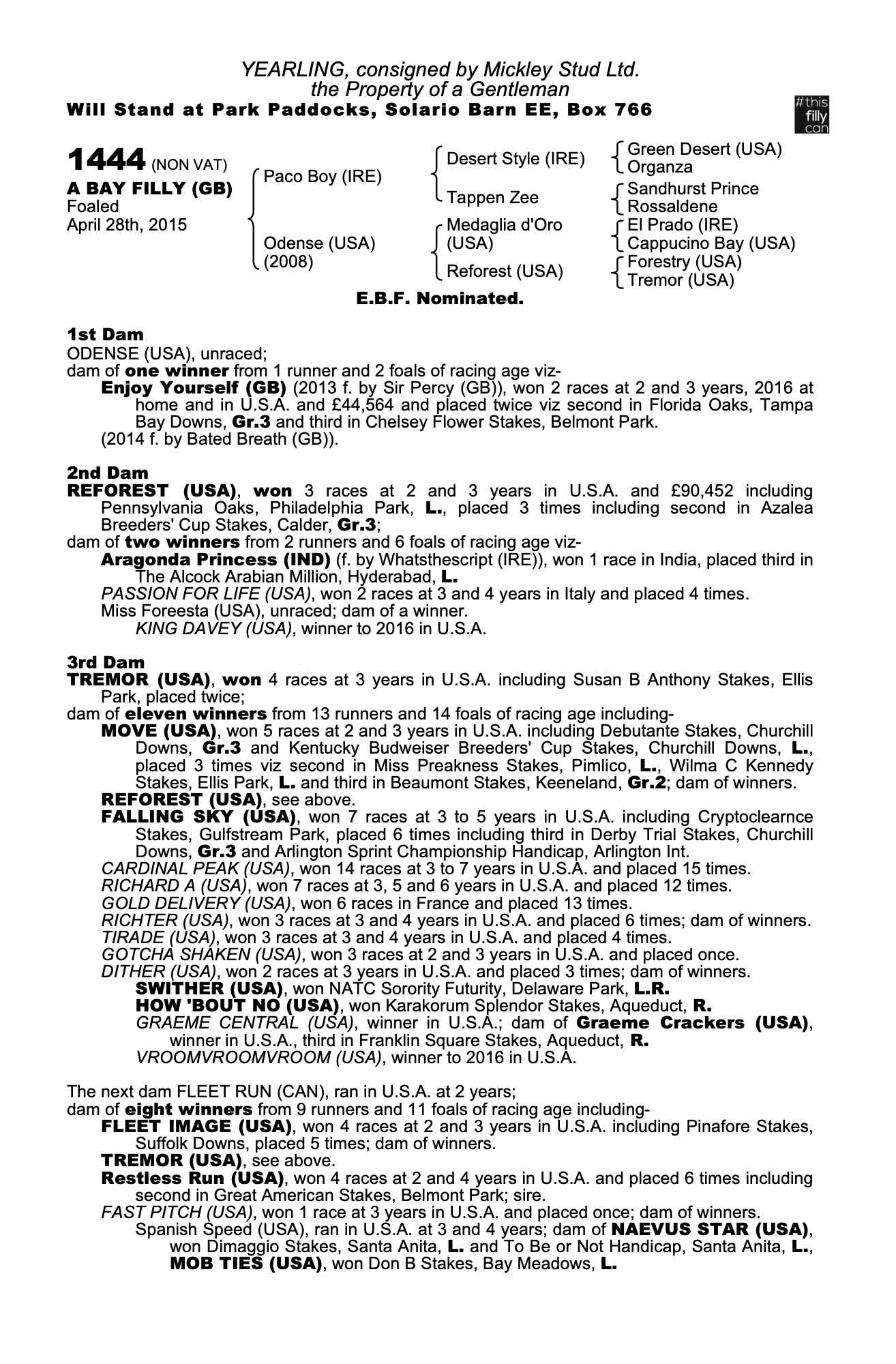 December Foal Sale 2013 lot 480 F. by Sir Percy (GB) 2013, Mill House Stud (Agent)=>Federico Barberini, Agent 7,000 gns