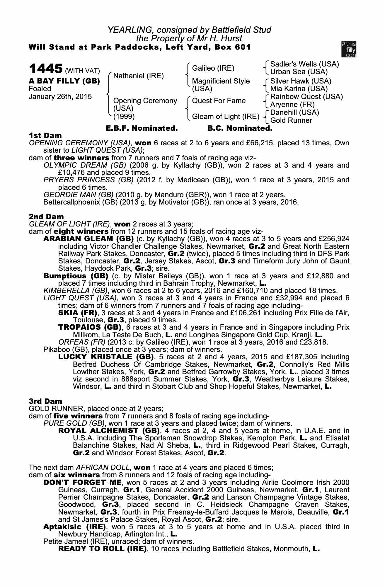 Consignor: Battlefield Stud