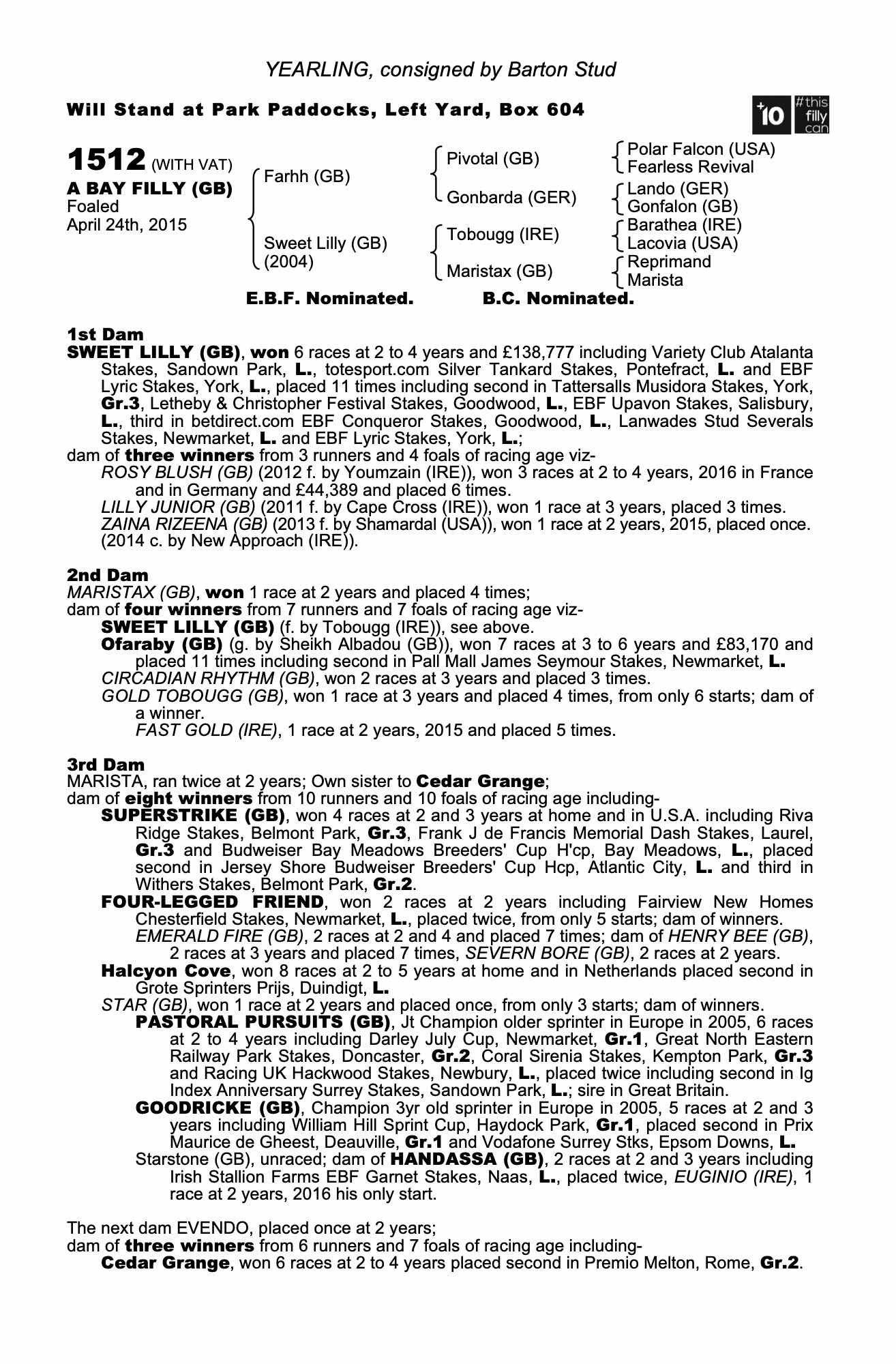 July Sale 2016 lot 572 Zaina Rizeena (GB) (F. by Shamardal (USA)), Musley Bank Stables (R. Fahey)=>Sheamus Mills Bloodstock / Yulong Investments 55,000 gns