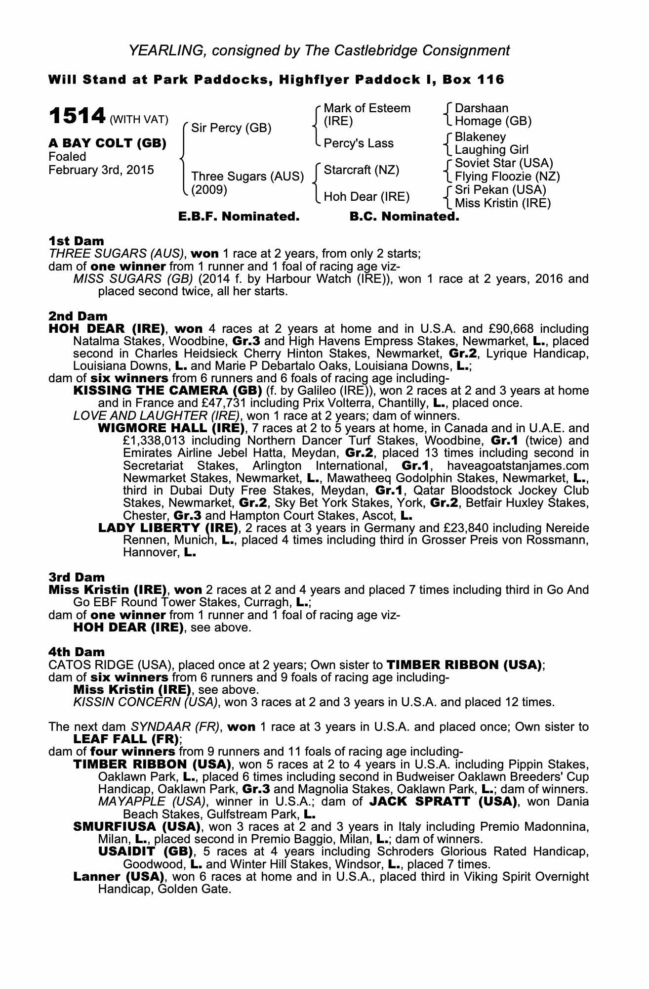 October Yearling Sale, Book 4 2015 lot 2171 F. by Harbour Watch (IRE) 2014, Chippenham Lodge Stud=>David Simcock 10,000 gns