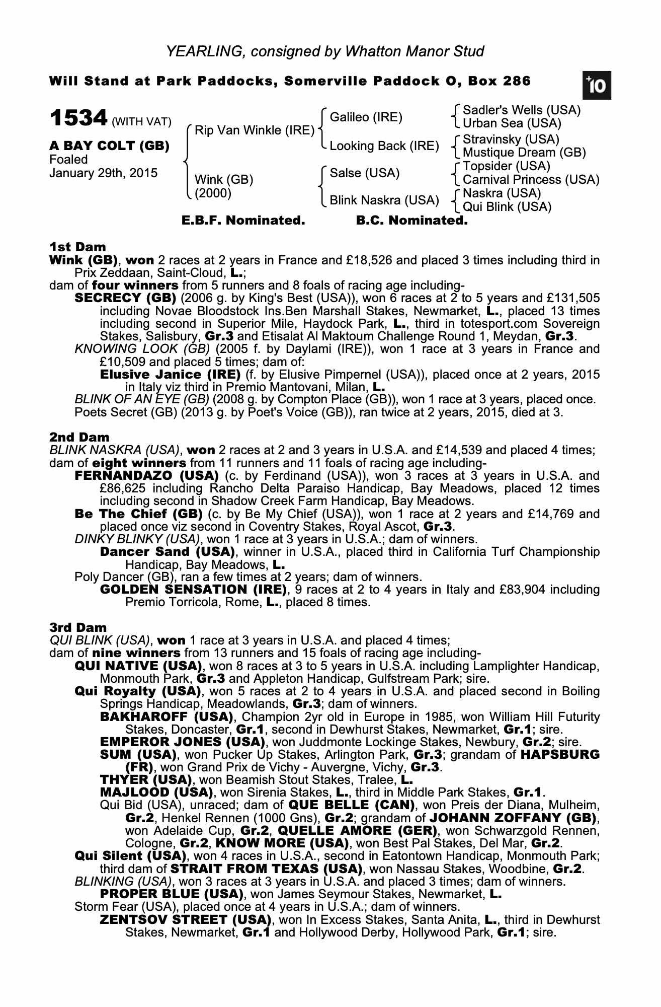 Consignor: Whatton Manor Stud