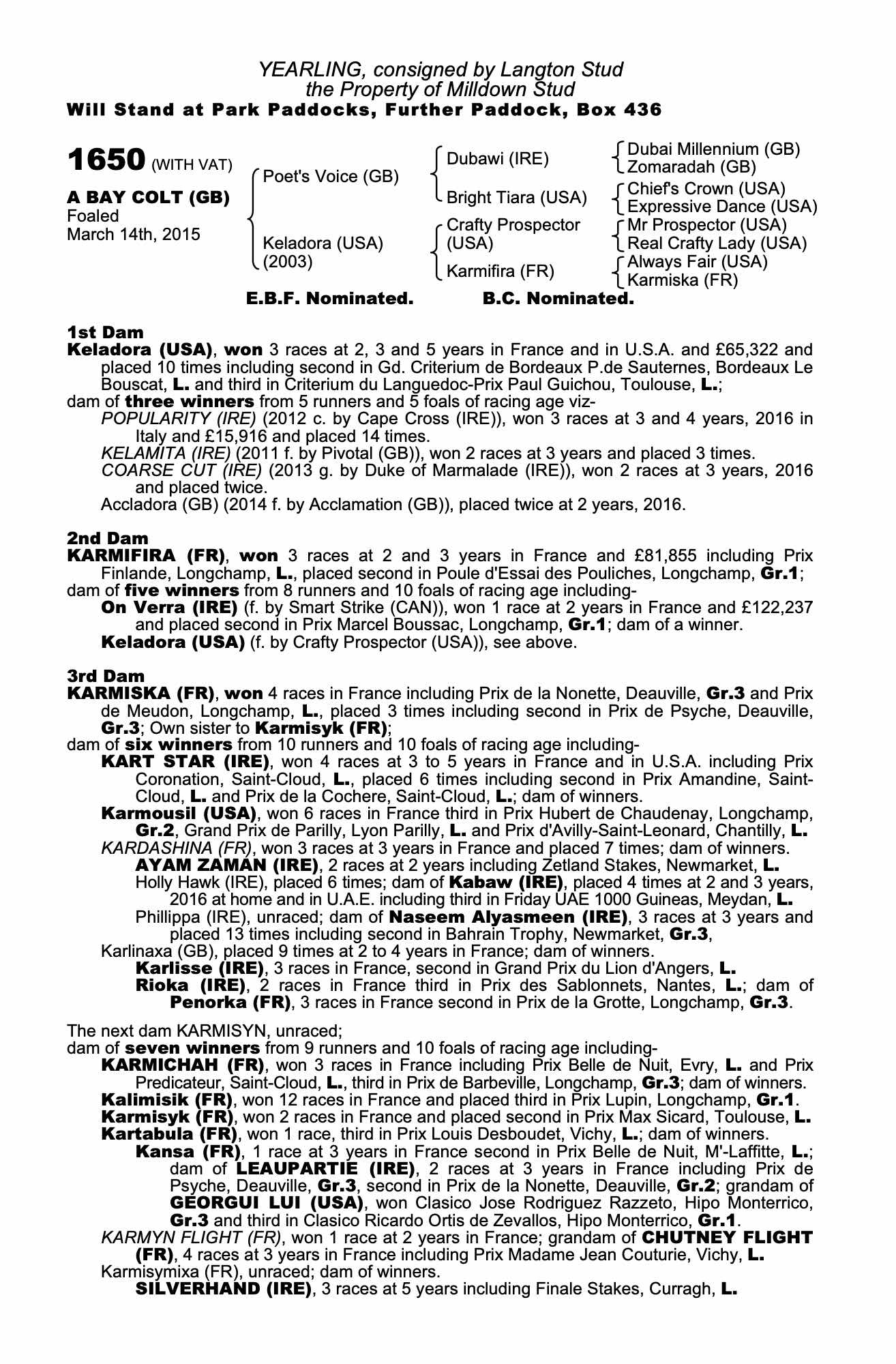 December Foal Sale 2014 lot 696 F. by Acclamation (GB) 2014, Langton Stud=>Michael Buckley 14,000 gns