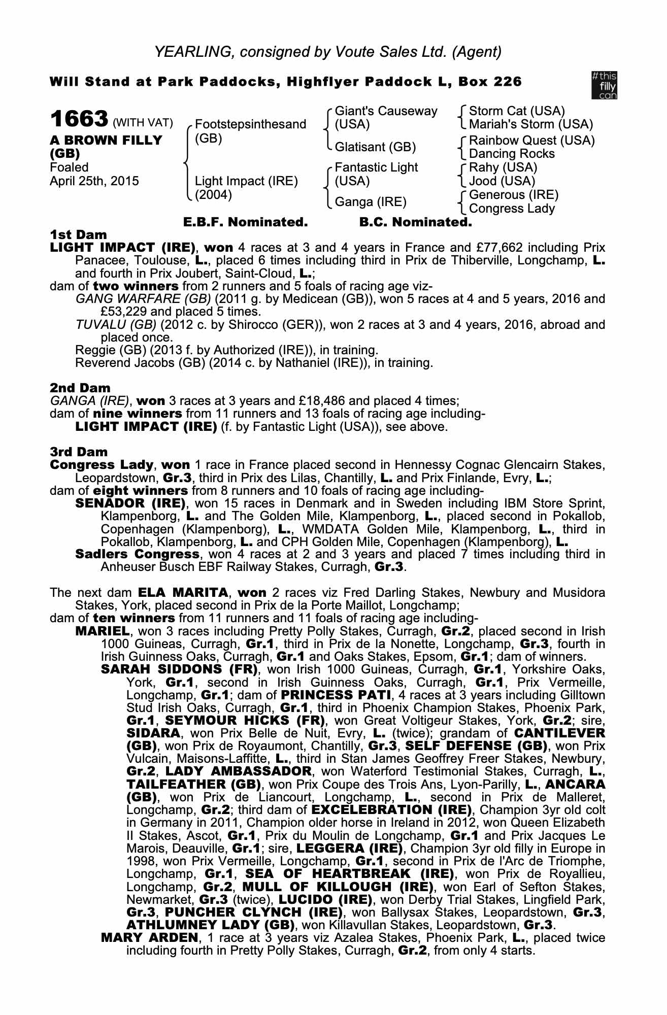 Guineas Breeze Up Sale 2015 lot 196 F. by Authorized (IRE) 2013, Hillwood Stud=>Lot Not Sold 7,500 gns