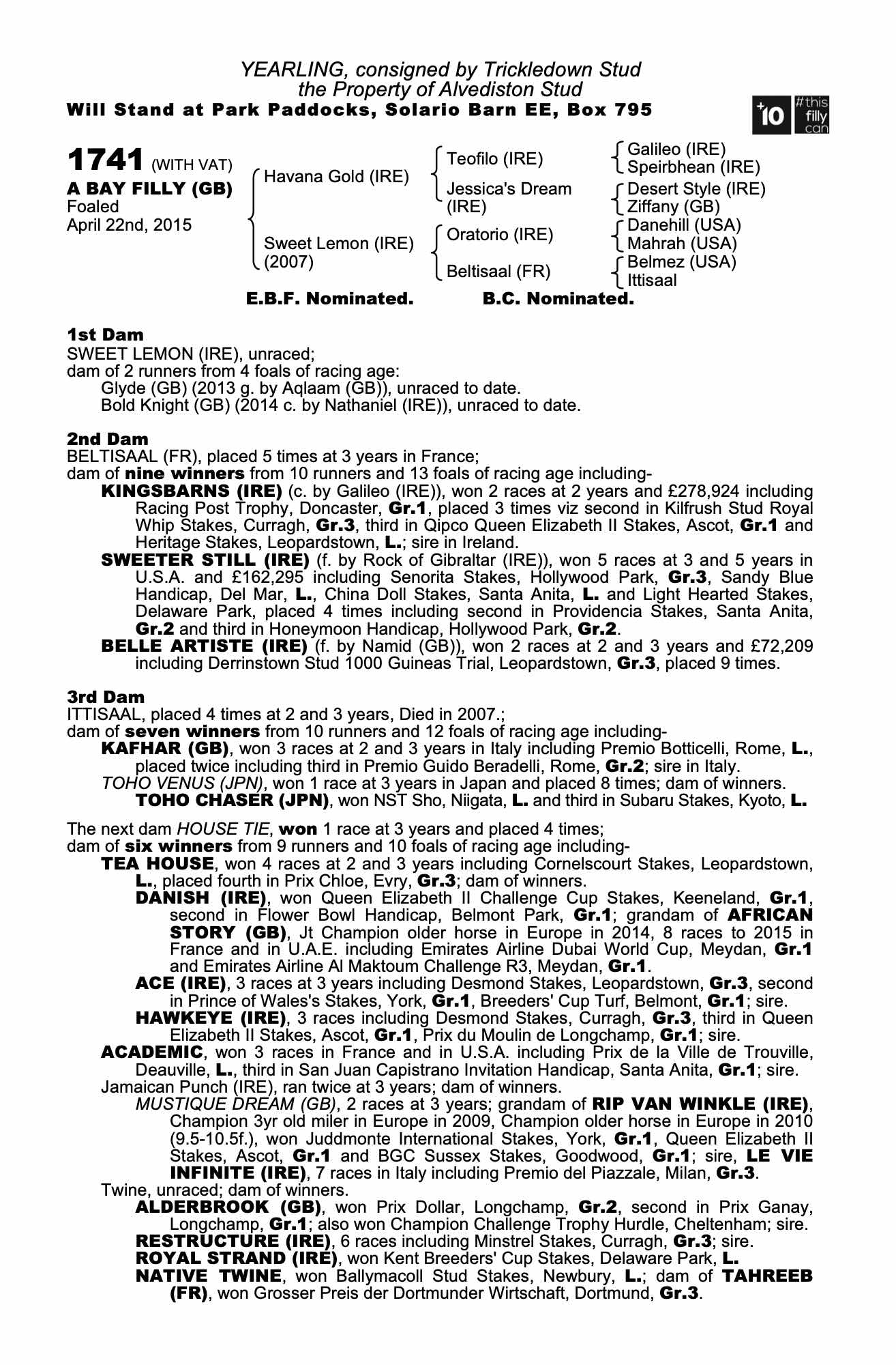 Ascot July Sale 2018 lot 86, Godolphin=>Lee Carter £1,000
