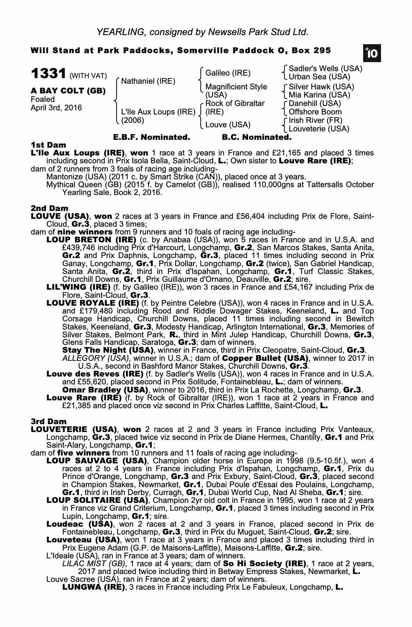 October Yearling Sale, Book 2 2016 lot 782 F. by Camelot (GB) 2015, Watership Down Stud=>Blandford Bloodstock 110,000 gns