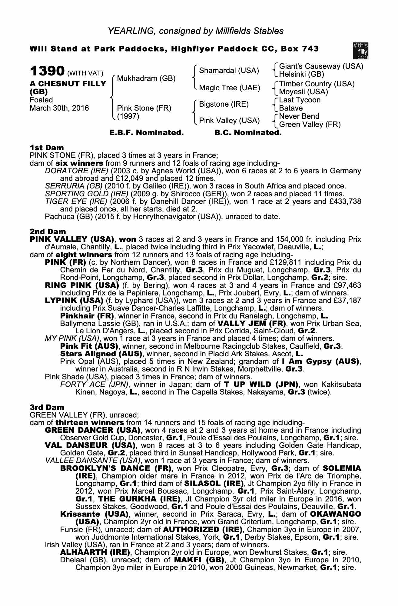 Consignor: Millfields Stables