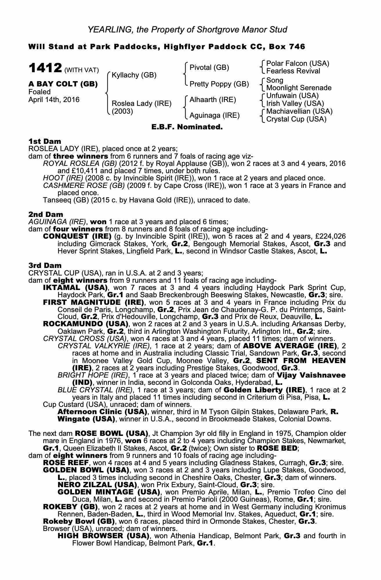 Consignor: Shortgrove Manor Stud