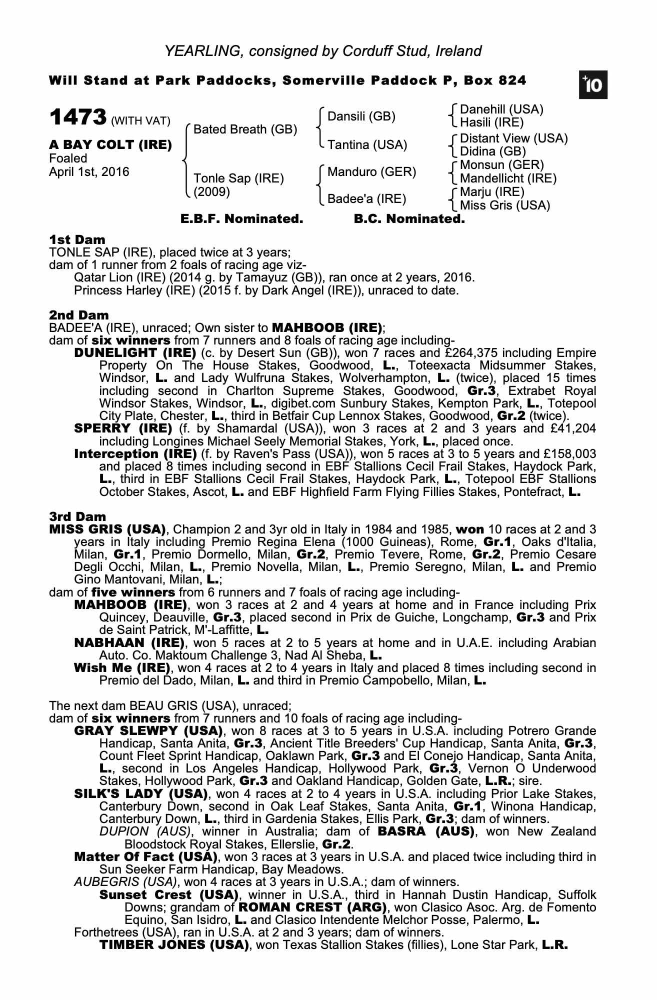 Consignor: Corduff Stud, Ireland