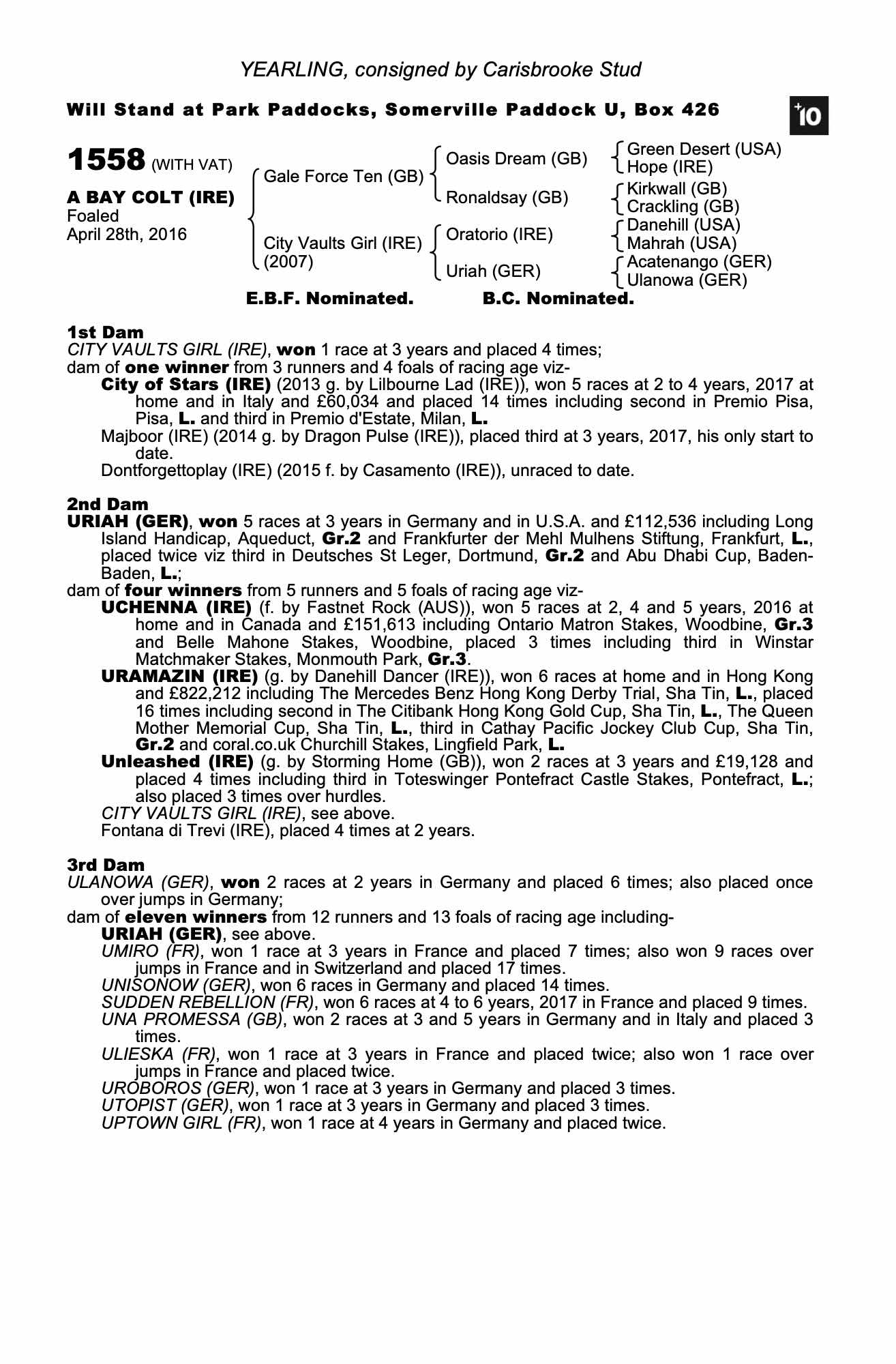 Consignor: Carisbrooke Stud