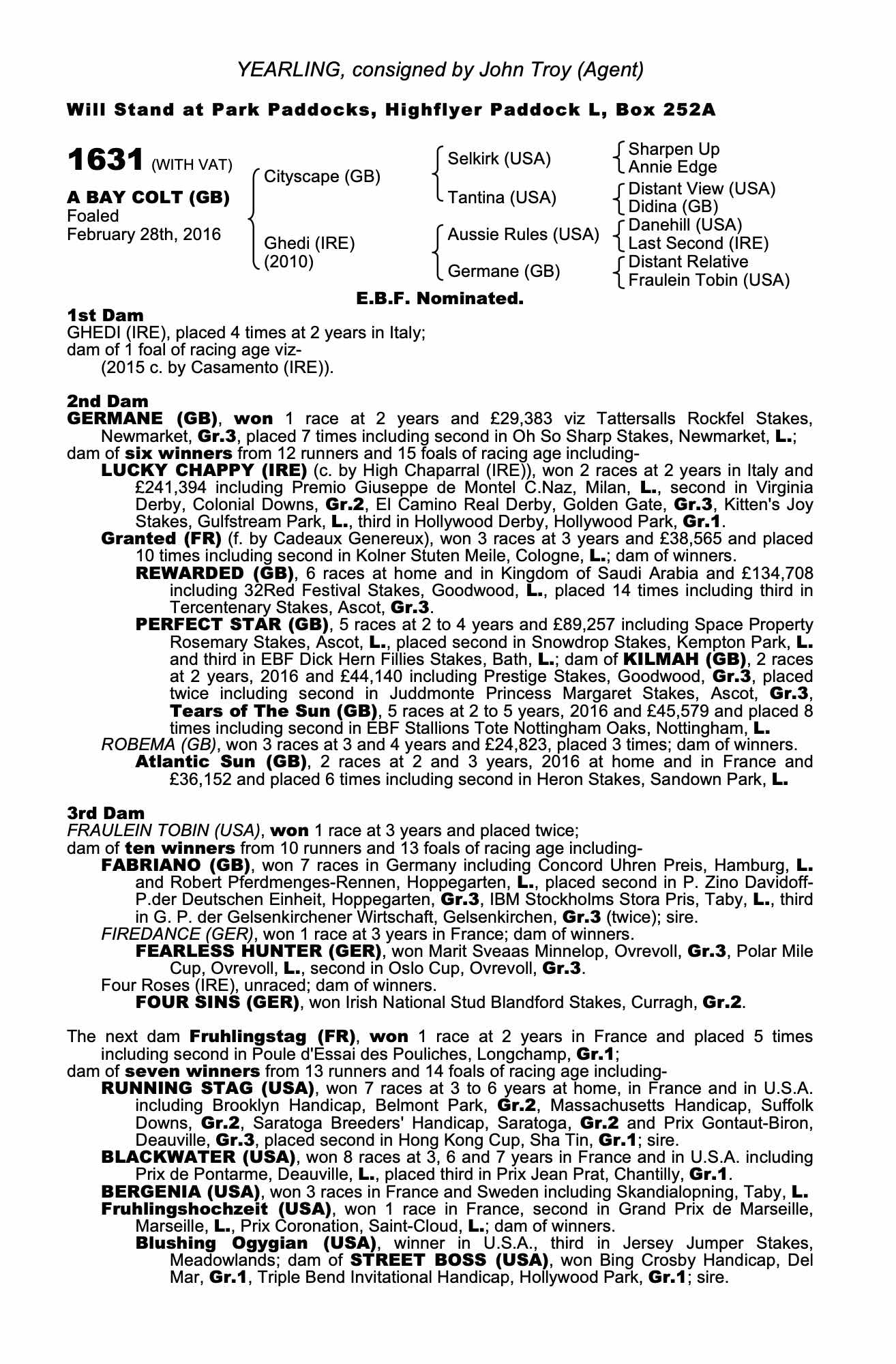 Ascot Yearling Sale 2018 lot 98 F. by Cable Bay (IRE) 2017, John Troy (Agent)=>Lot Not Sold £6,500