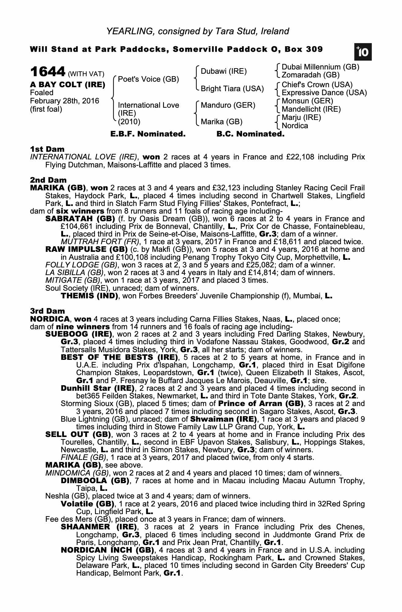 Consignor: Tara Stud, Ireland