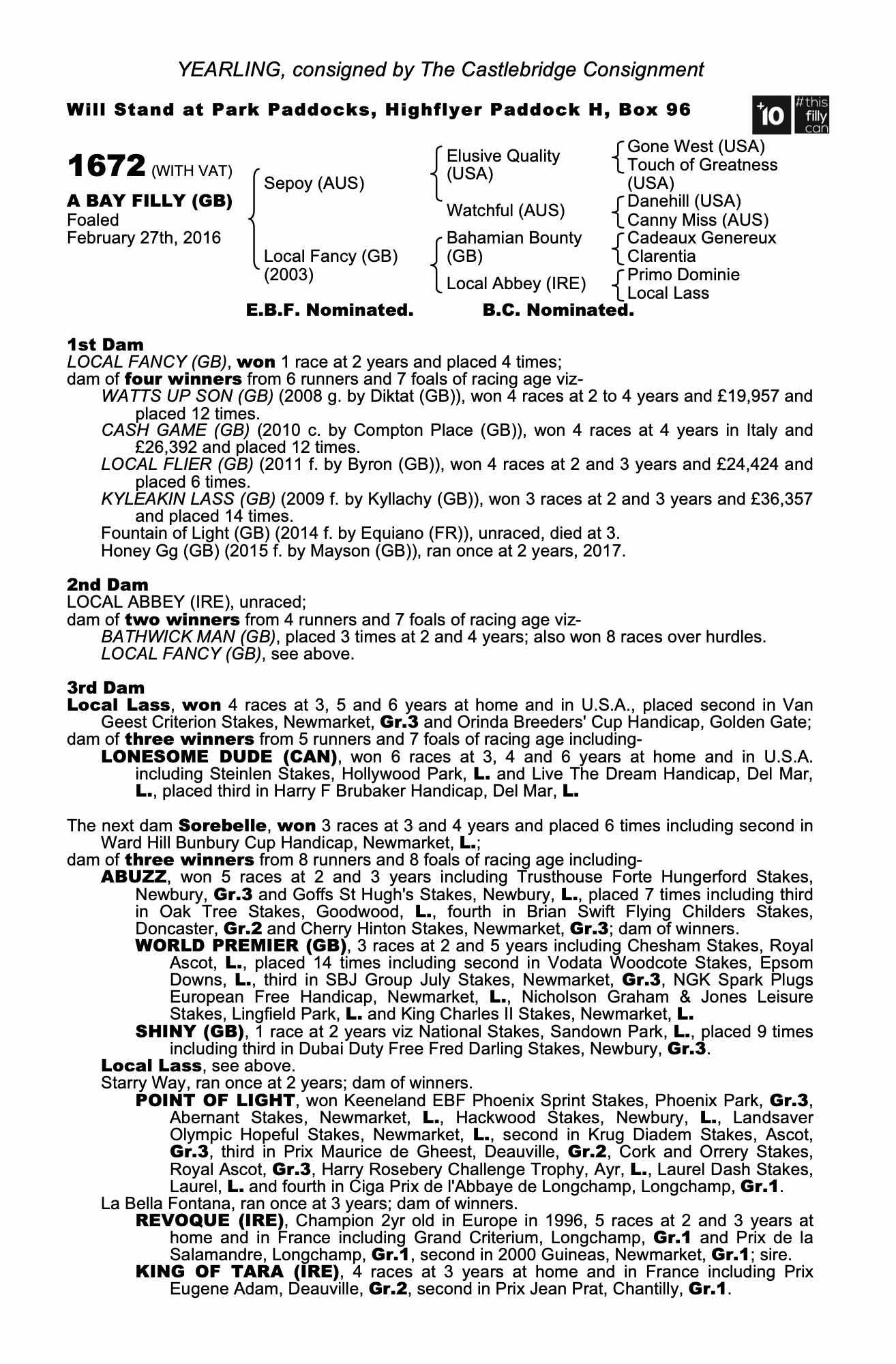 October Yearling Sale, Book 3 2010 lot 1812 F. by Kyllachy (GB) 2009, Jamie Railton, Agent=>Kern/Lillingston Association 14,000 gns