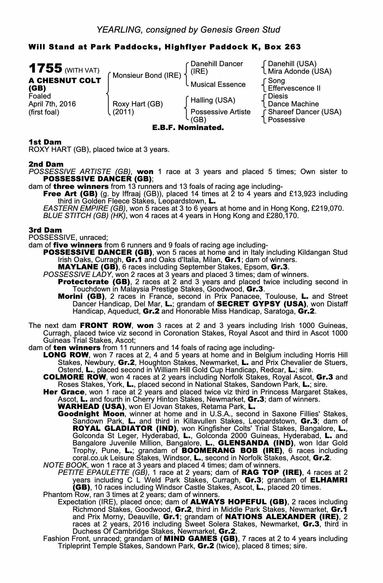 October Yearling Sale, Book 3 2018 lot 1710 F. by Outstrip (GB) 2017, Genesis Green Stud=>Vendor 800 gns