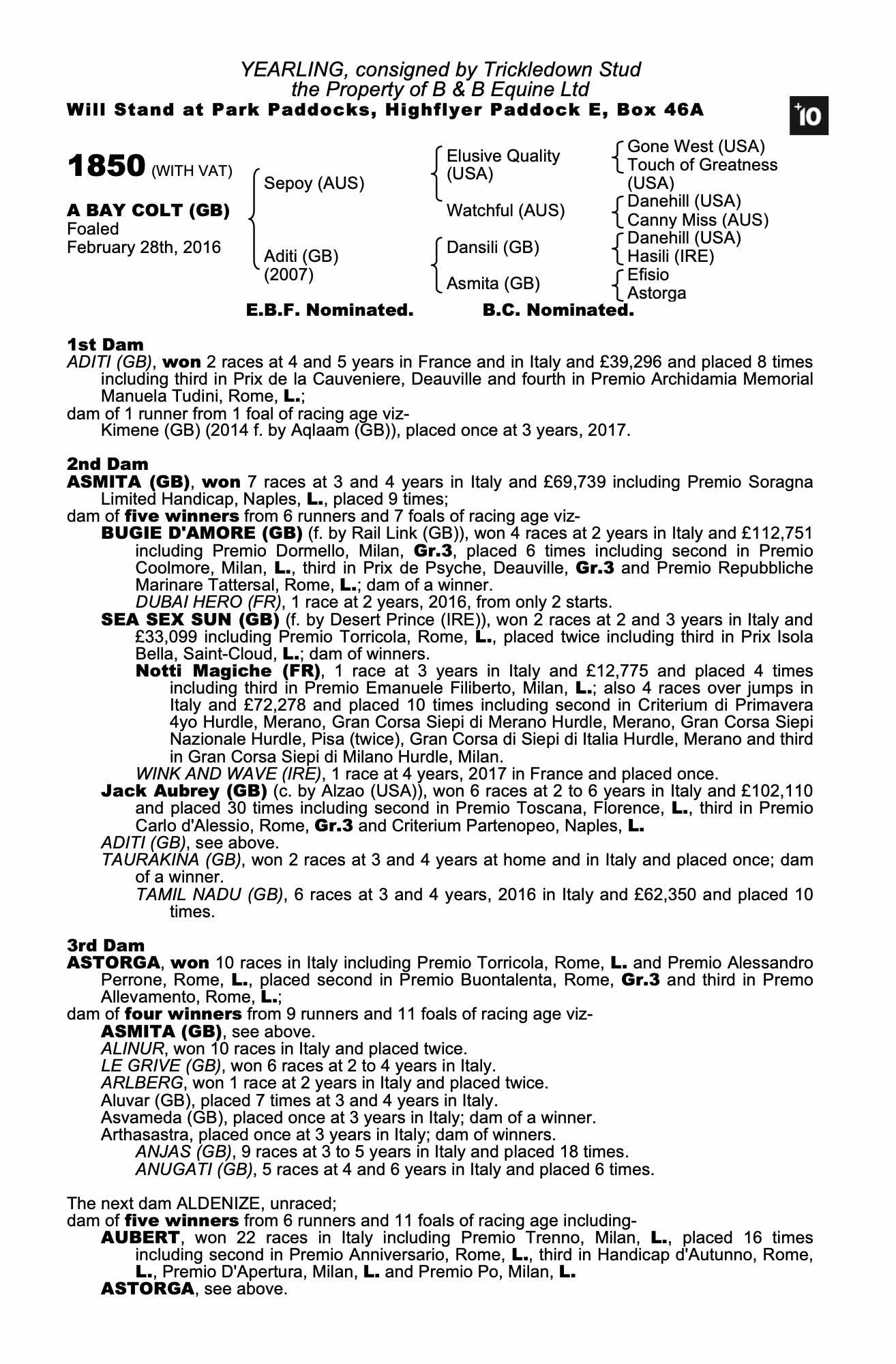 December Foal Sale 2019 lot 1157 C. by Outstrip (GB) 2019, Trickledown Stud=>Federico Barberini 800 gns