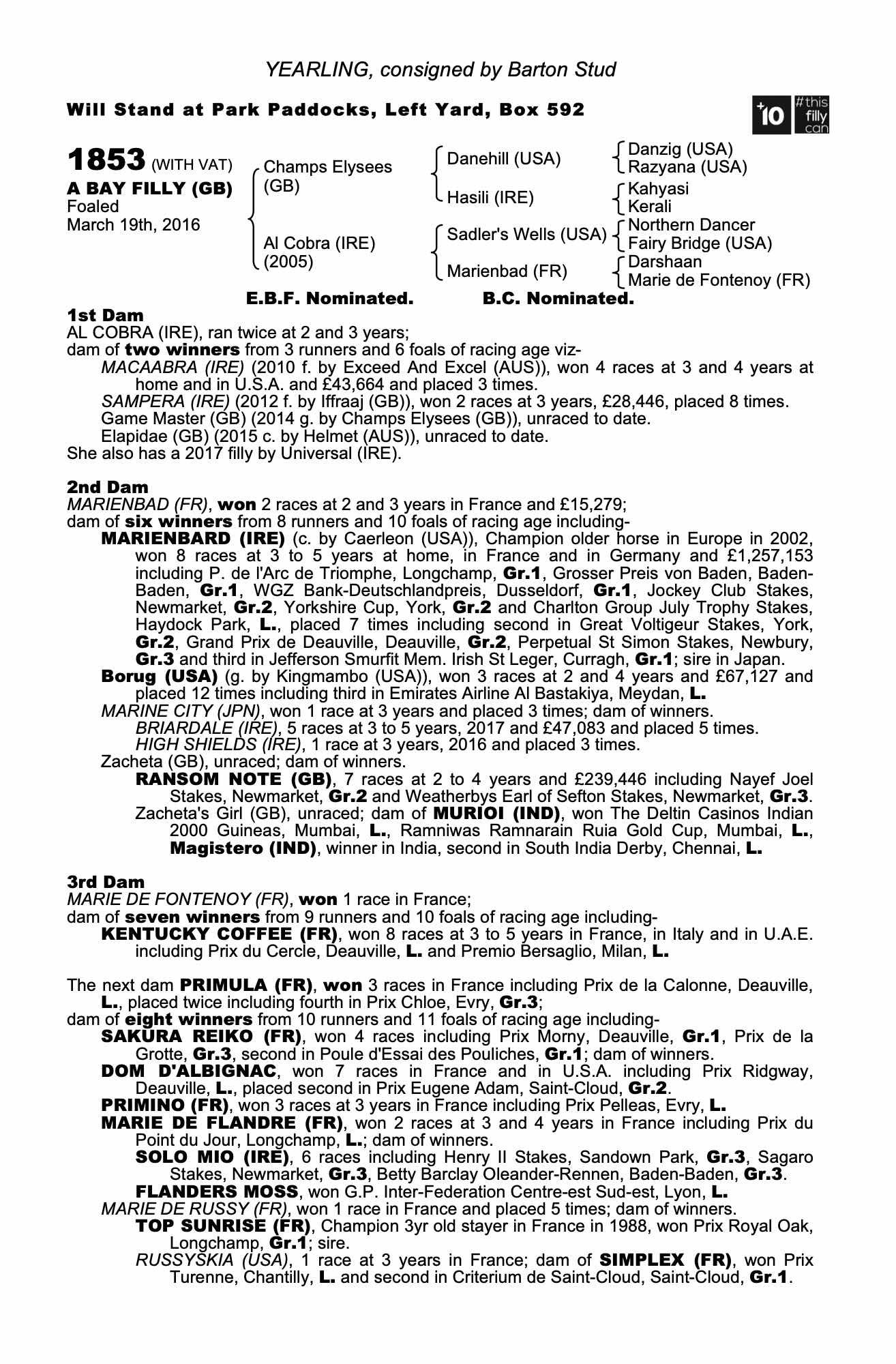 October Yearling Sale, Book 4 2019 lot 1976 F. by The Last Lion (IRE) 2018, Brendan Boyle Bloodstock=>Vendor 20,000 gns