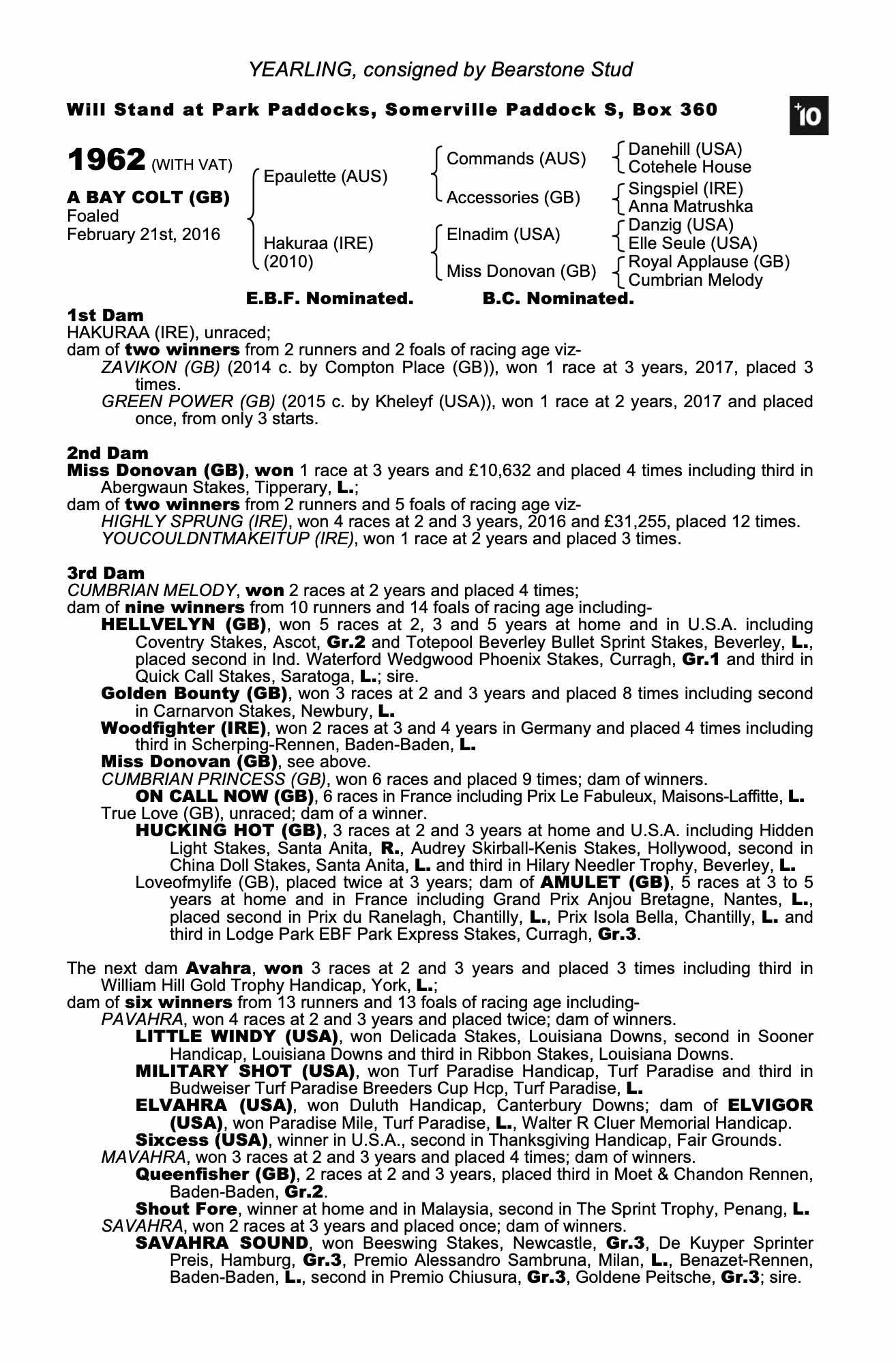 Consignor: Bearstone Stud