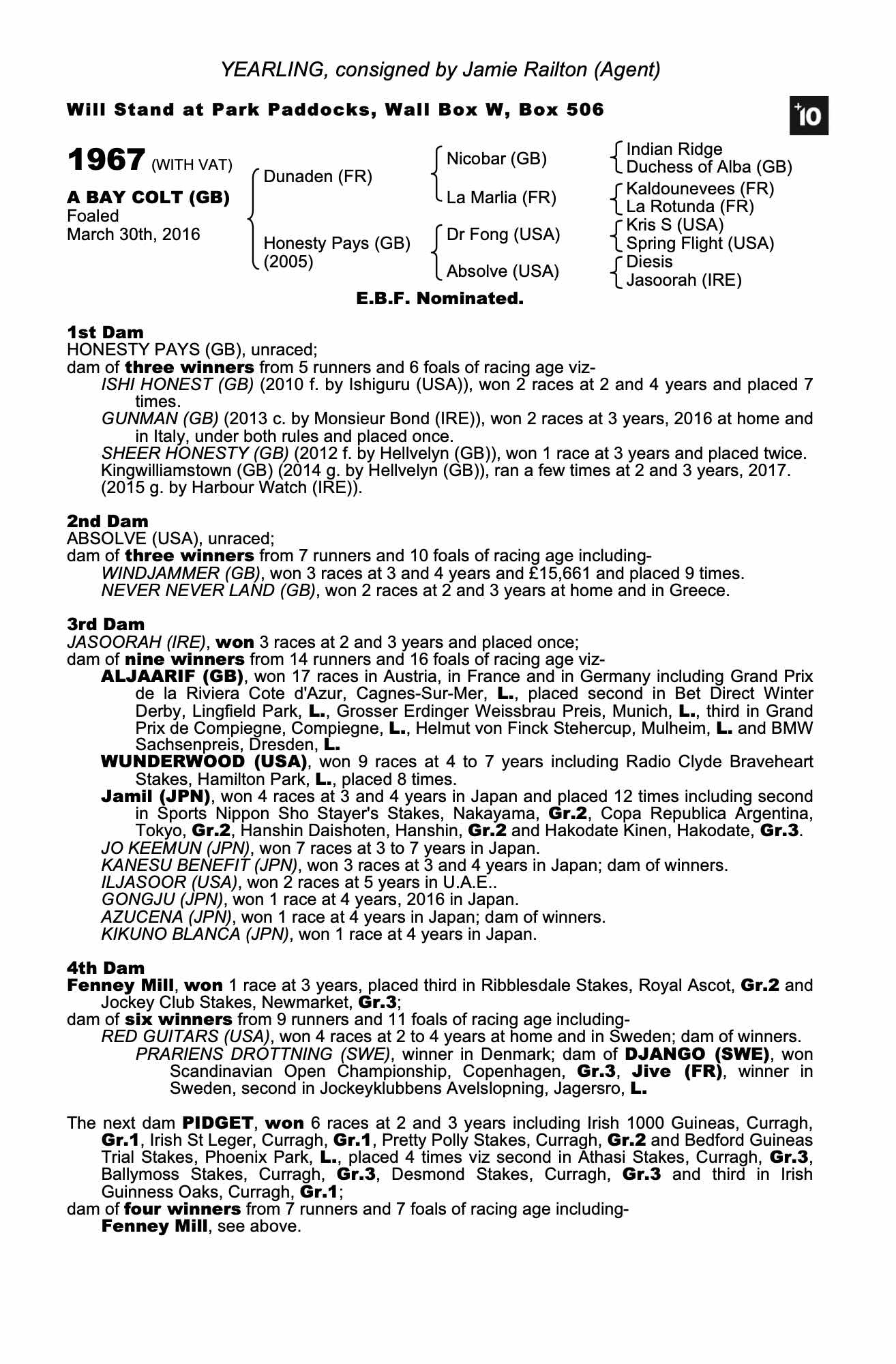 Consignor: Jamie Railton (Agent)