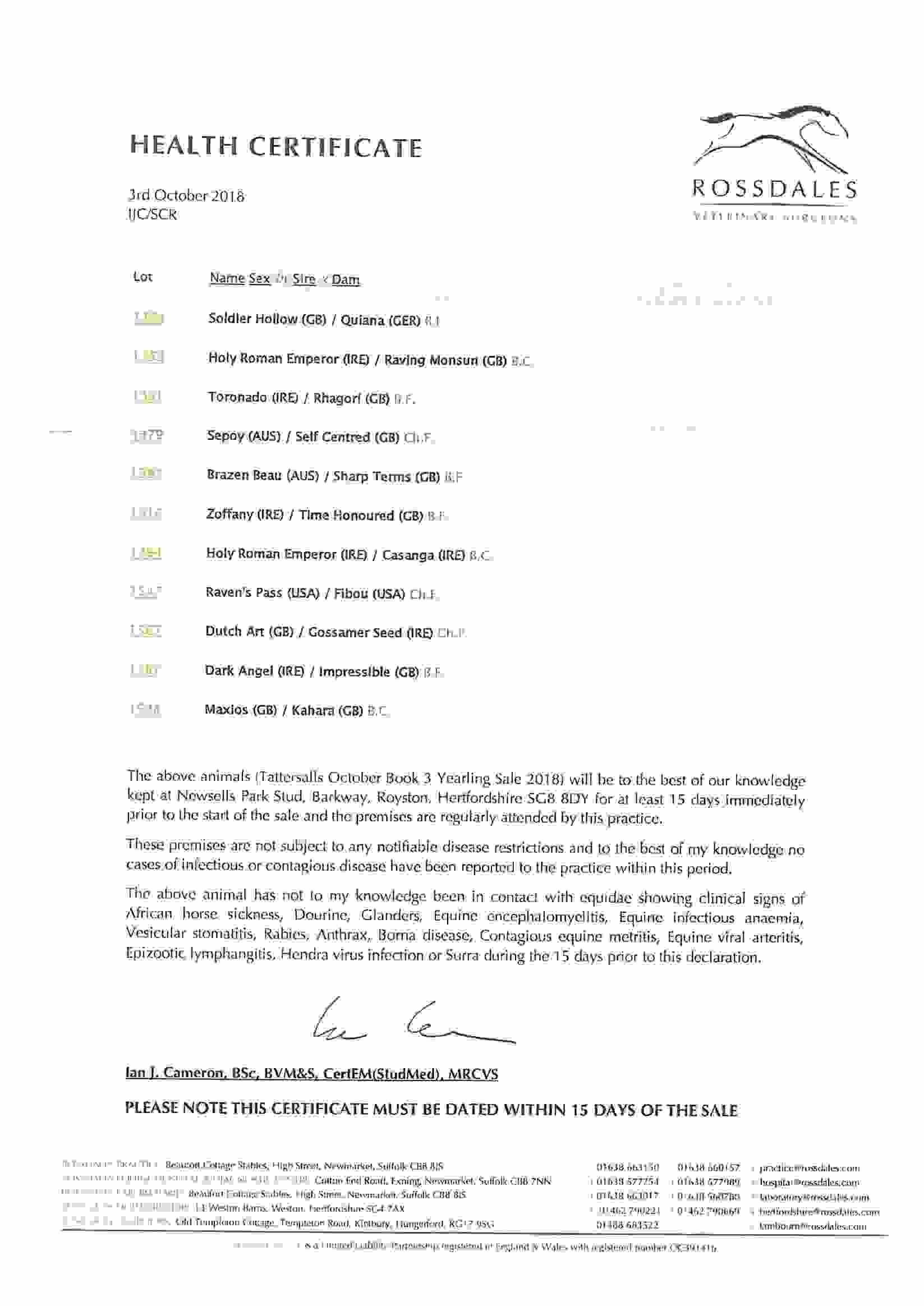 October Yearling Sale, Book 2 2012 lot 1164 C. by Duke of Marmalade (IRE) 2011, Jamie Railton, Agent=>Vendor 3,000 gns