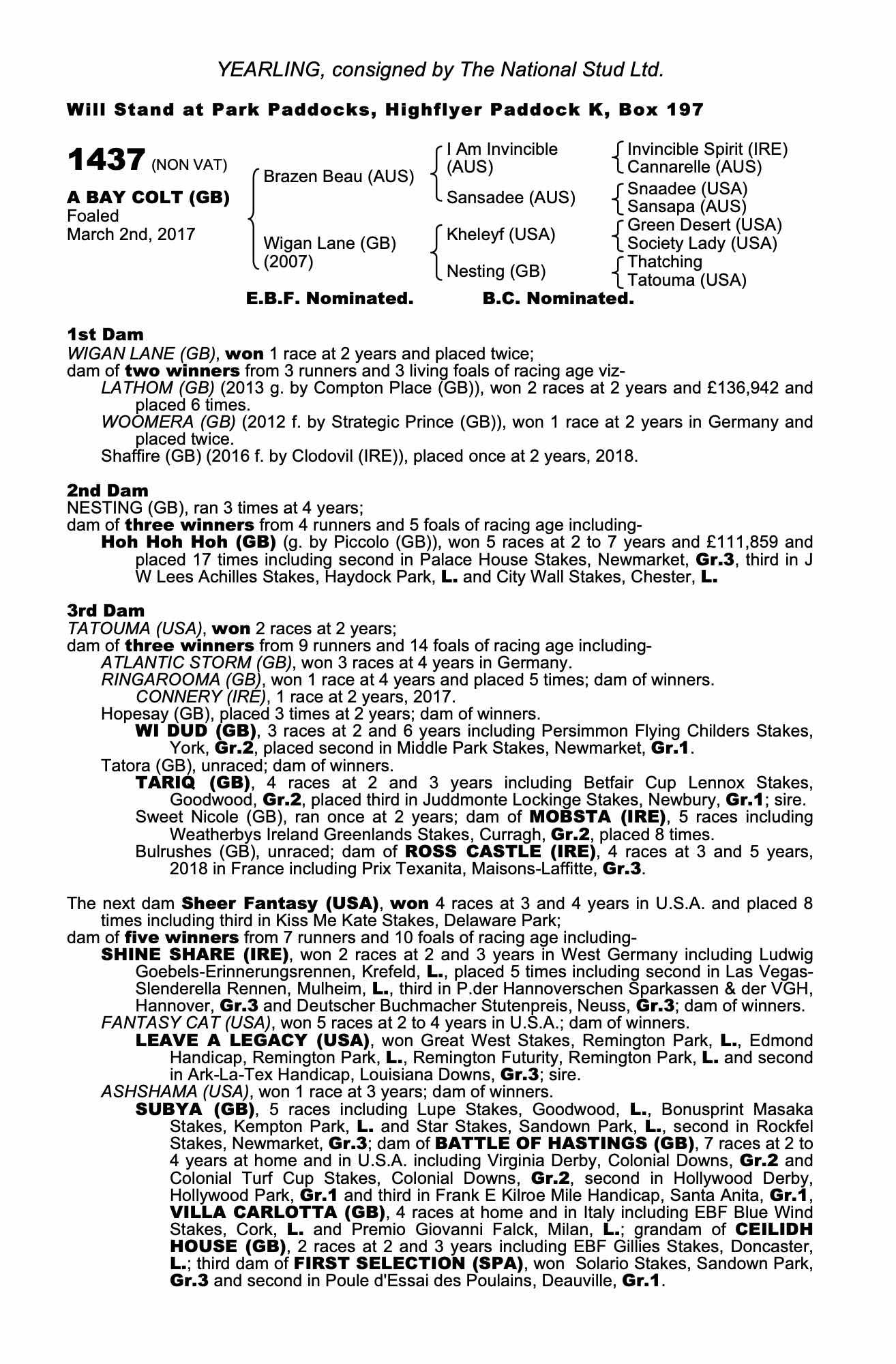 October Yearling Sale, Book 3 2019 lot 1710 F. by Adaay (IRE) 2018, The National Stud Ltd.=>Blandford Bloodstock 28,000 gns