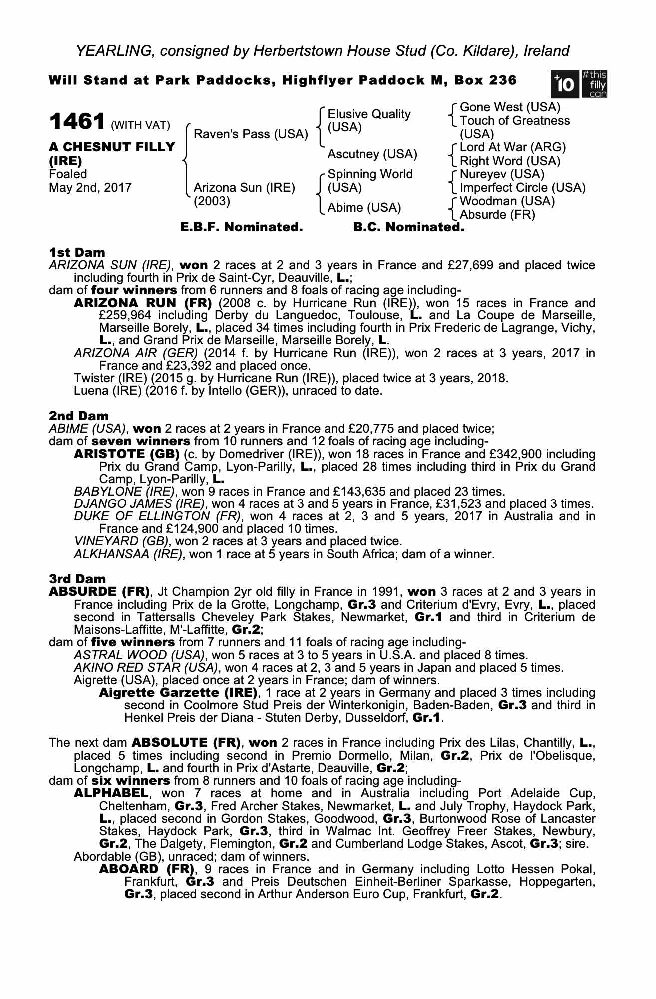 September Yearling Sale 2019 lot 131 F. by Dawn Approach (IRE) 2018, Herbertstown House Stud (Co. Kildare)=>Mark Cuschieri €4,500