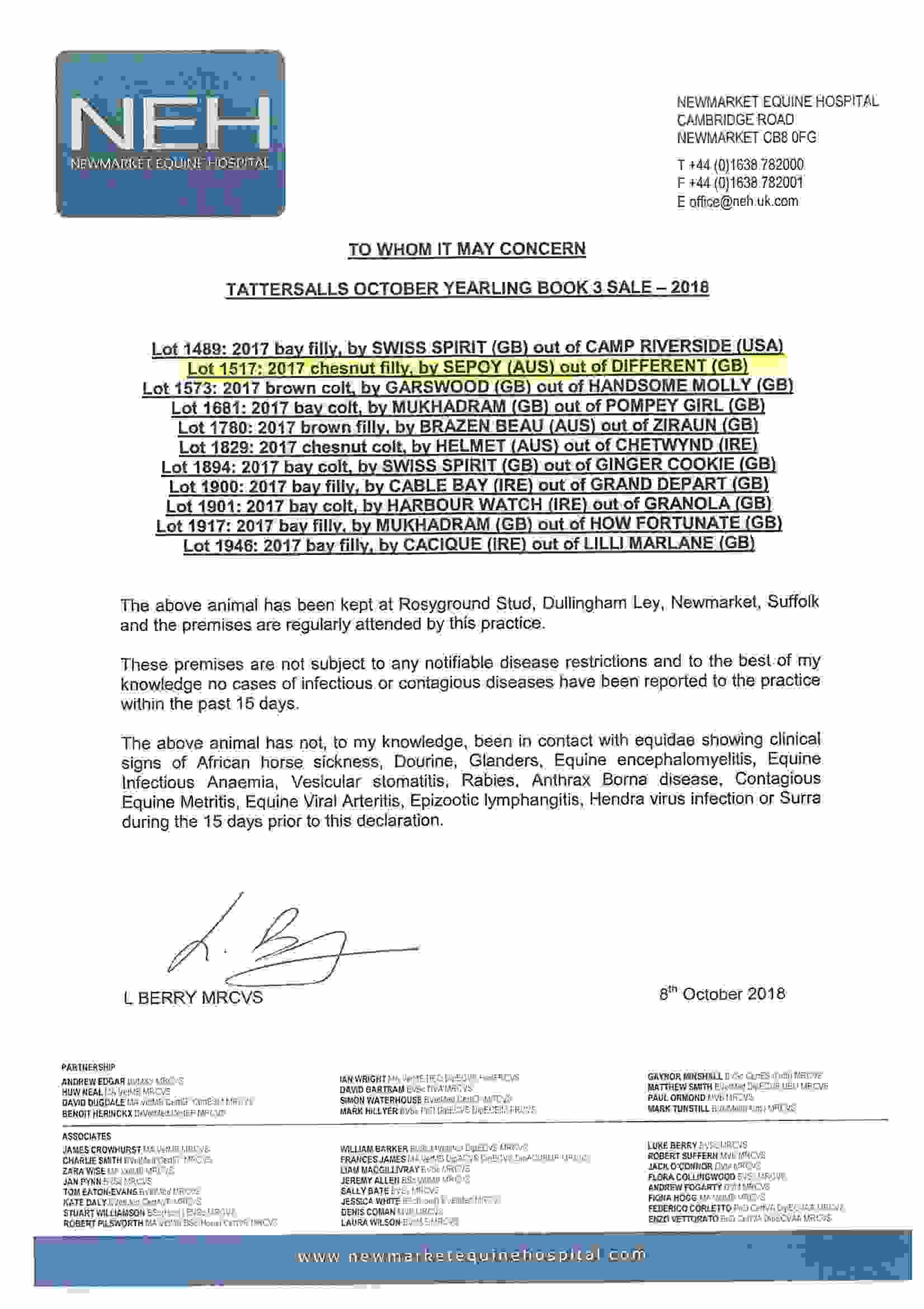 Consignor: Rosyground Stud