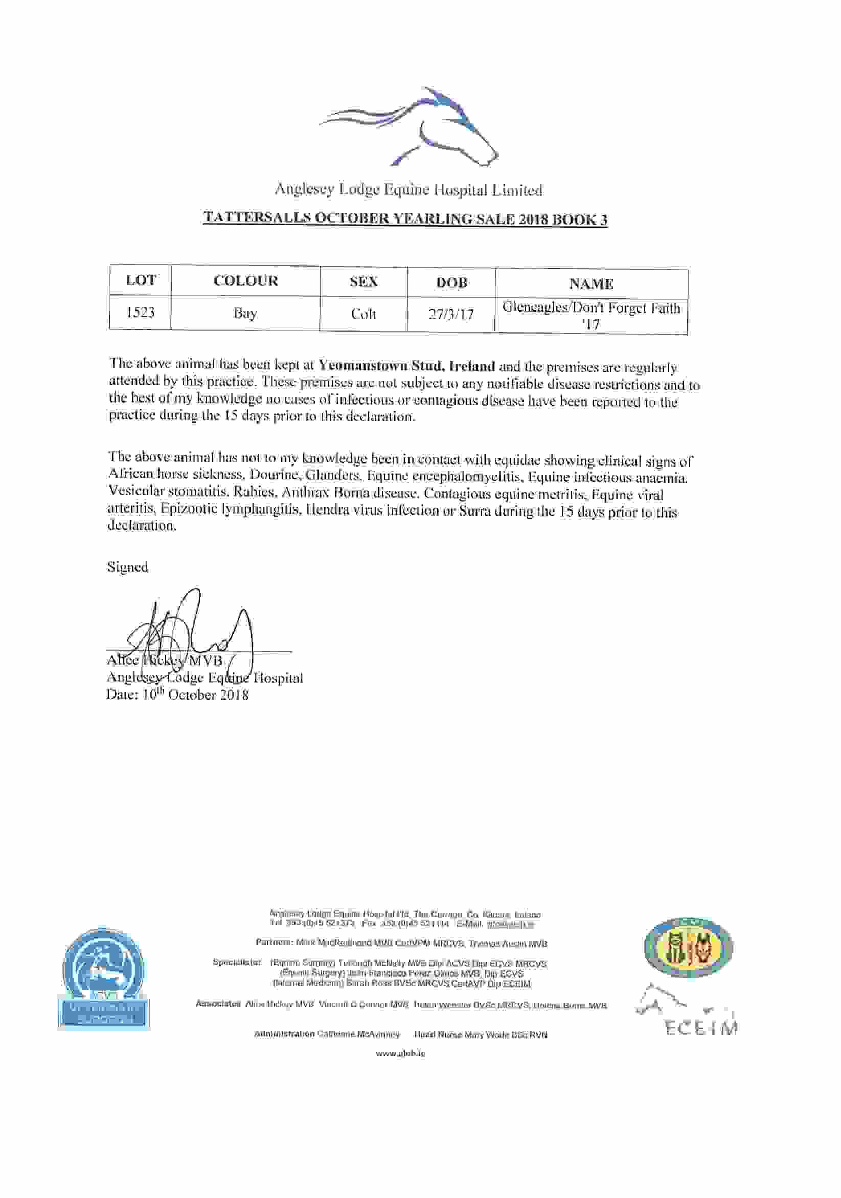 Consignor: Yeomanstown Stud, Ireland