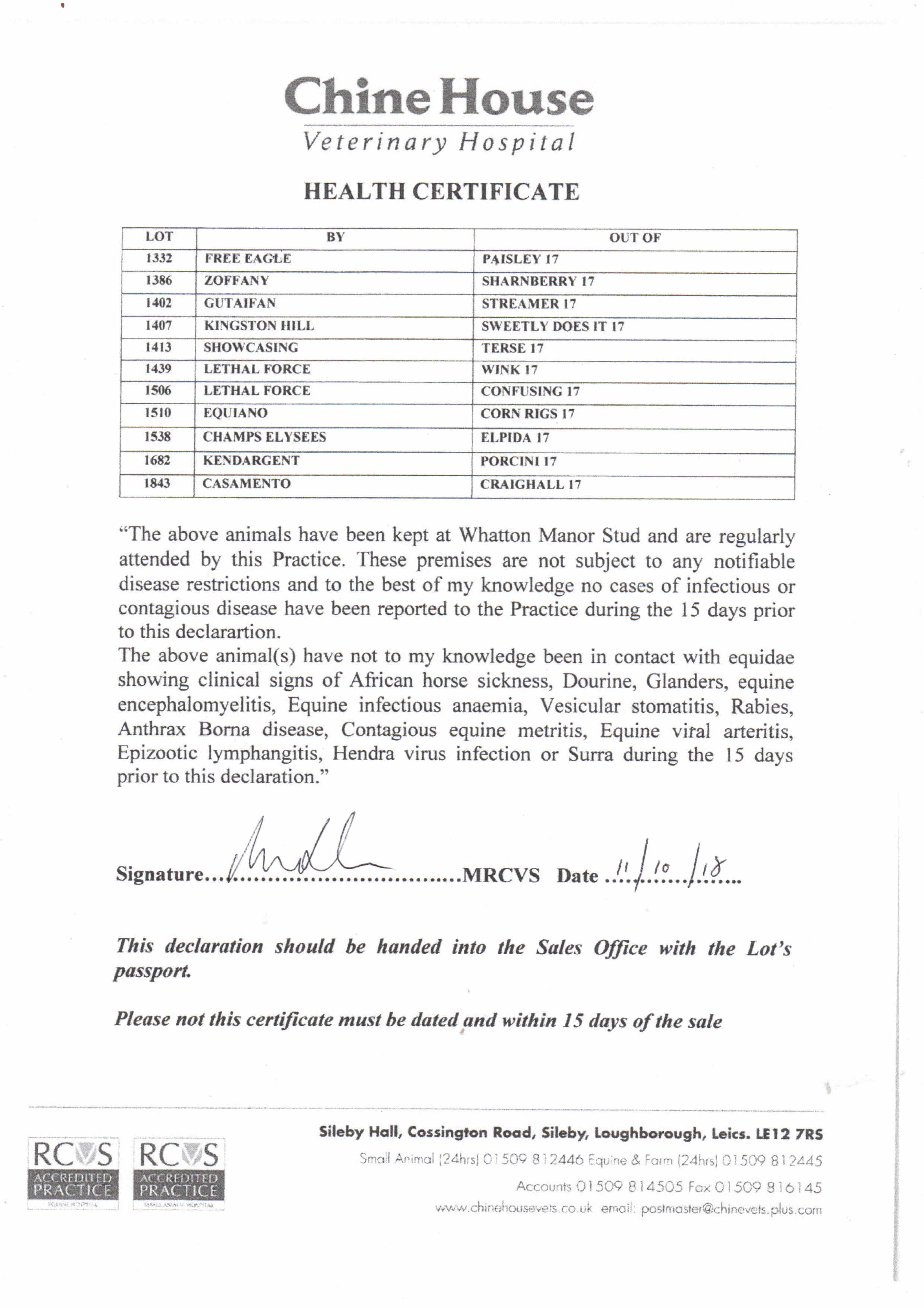 Consignor: Whatton Manor Stud