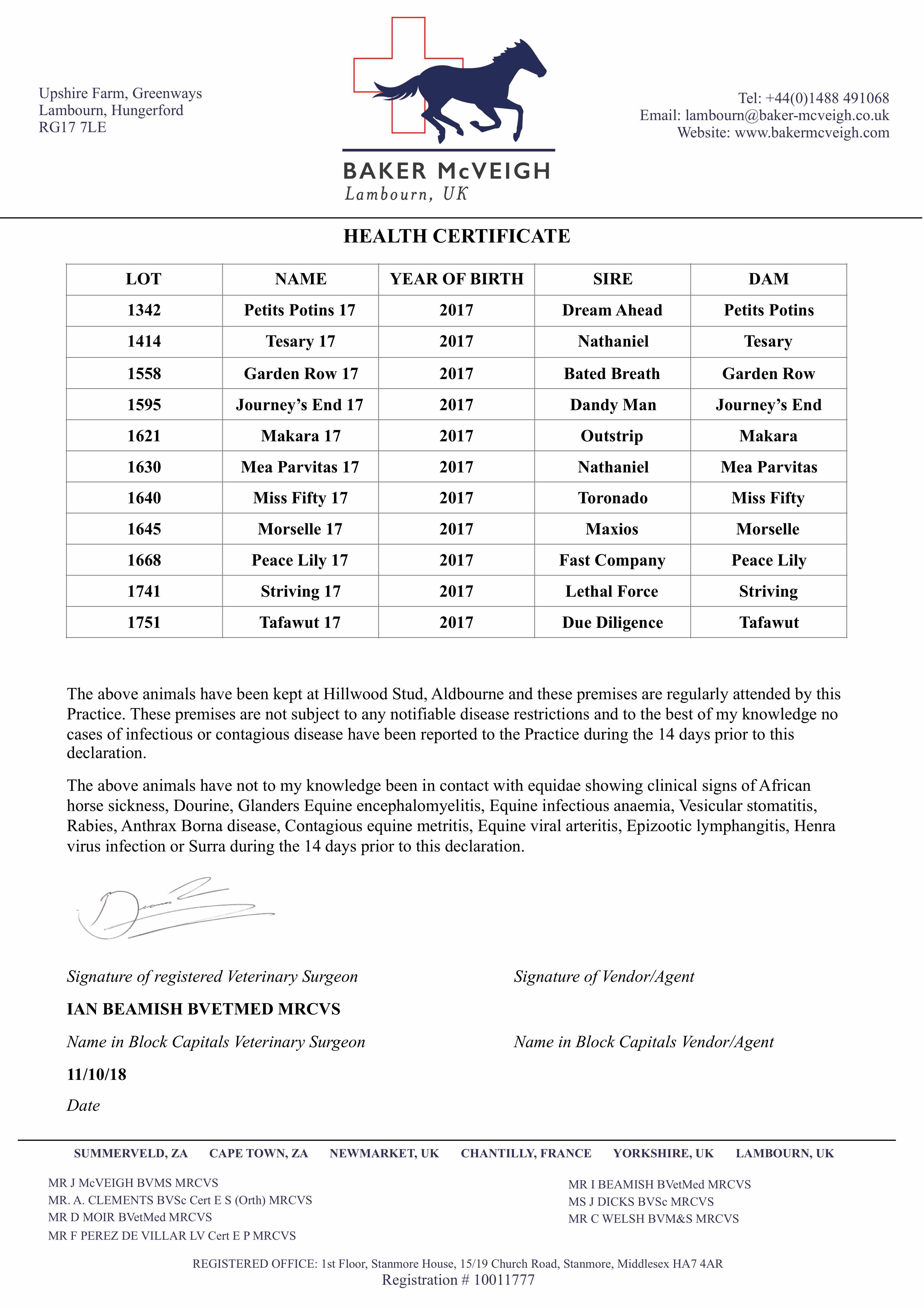 October Yearling Sale, Book 2 2017 lot 1262 F. by Iffraaj (GB) 2016, Hillwood Stud=>Con Marnane 55,000 gns